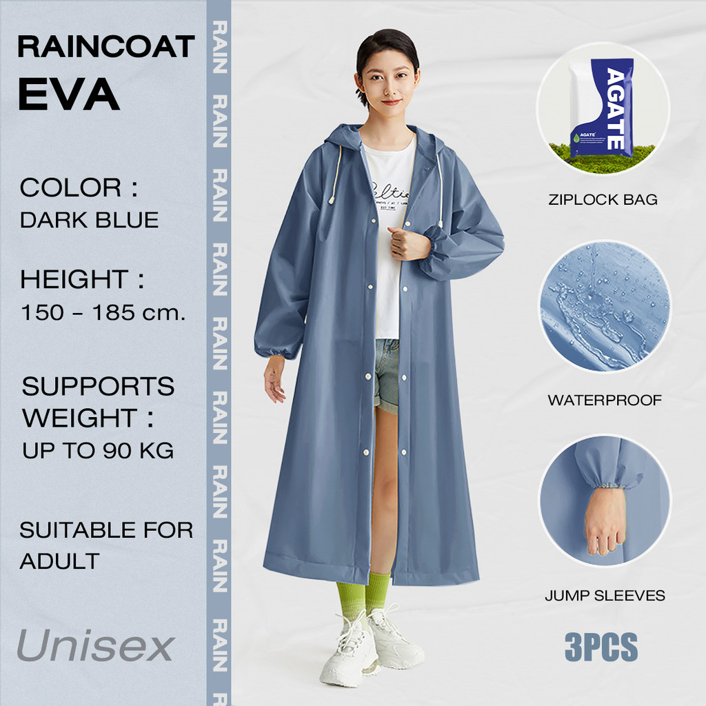 【Agate Design】Adult Rain Coat Unisex Outdoor Hoodie Poncho Rainsuit Foldable Waterproof Thick EVA Baju Hujan 雨衣