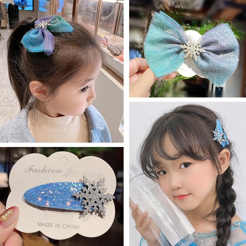 AIDA Elsa Princess Frozen Hair Pin Hair Clip BB Clip Bangs Cute Cartoons Kids Bow-knot Comb Set Hair Tie Rubberband