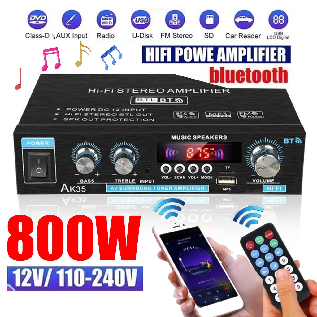 AK35 800W Home Music Speakers bluetooth Digital Amplifiers Audio 110-240v Class D Home & Car Use Hifi FM Speakers
