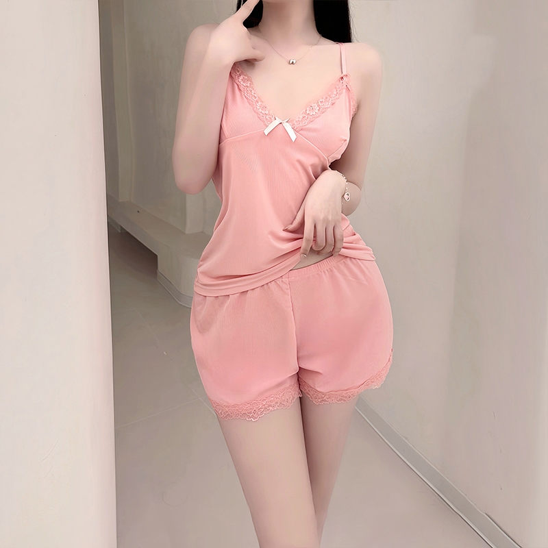 AKLOVER Sexy Pajama Set with Lace, Two-Piece Cotton Tank Top