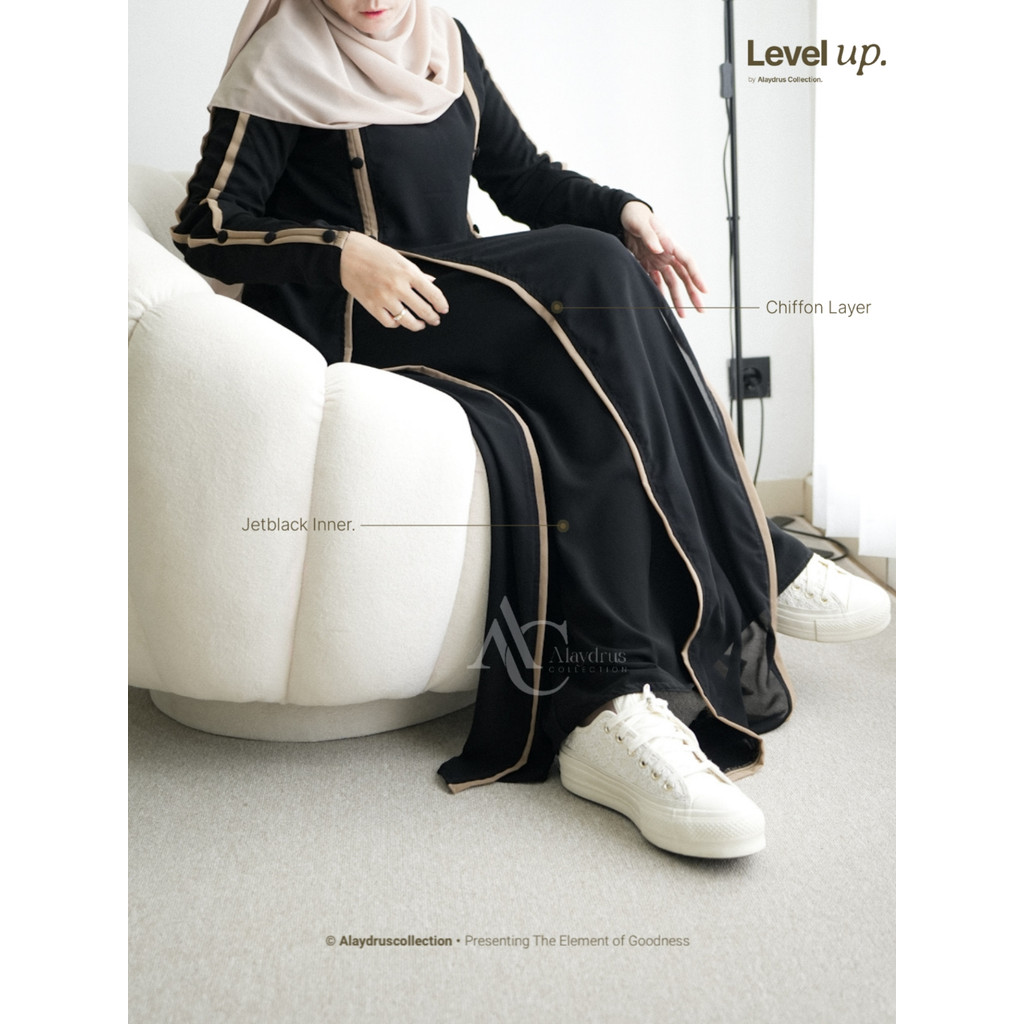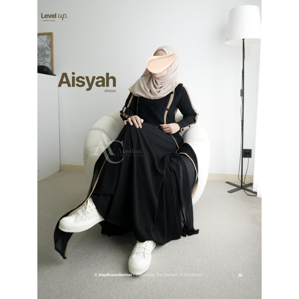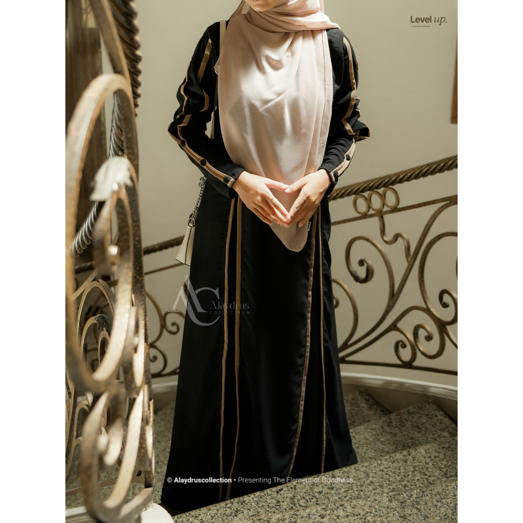 Alaydrus Collection Black Abaya Turkey Aisyah Gamis Syari Muslimah Jetblack Black Chiffon Combination
