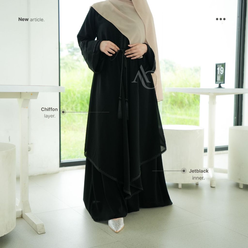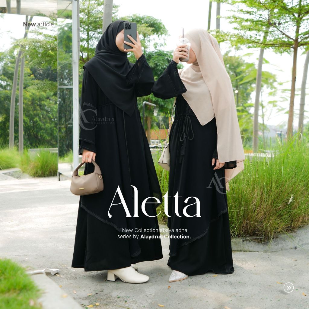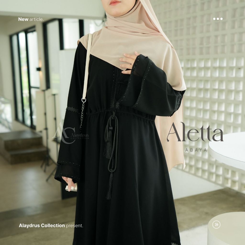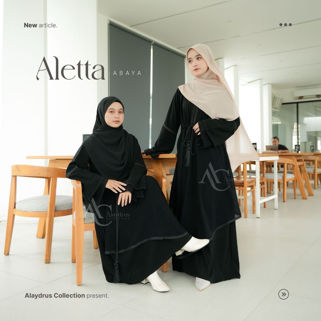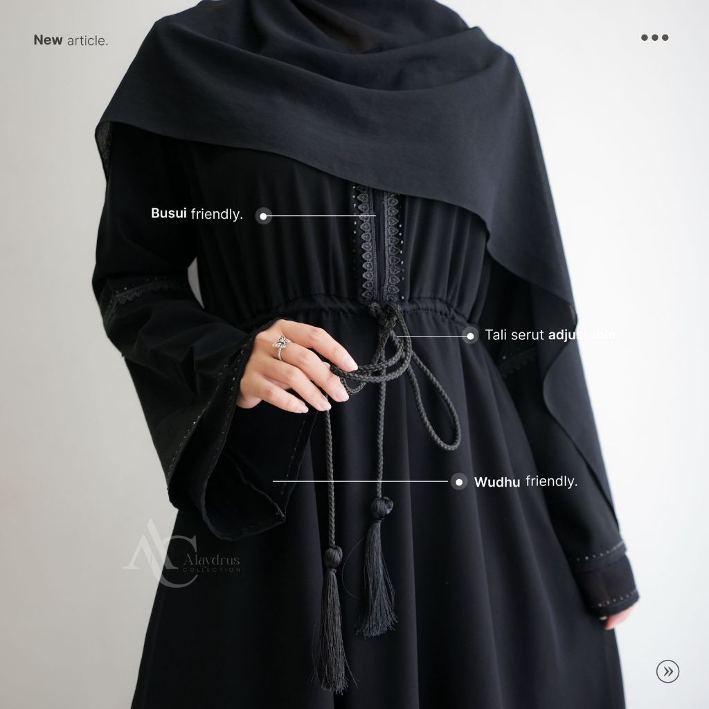 Alaydrus Collection Black Abaya Turkey Aletta Gamis Syari Muslimah Jetblack Black Chiffon Combination