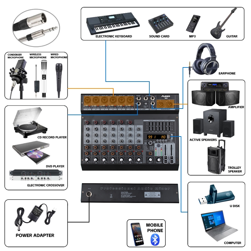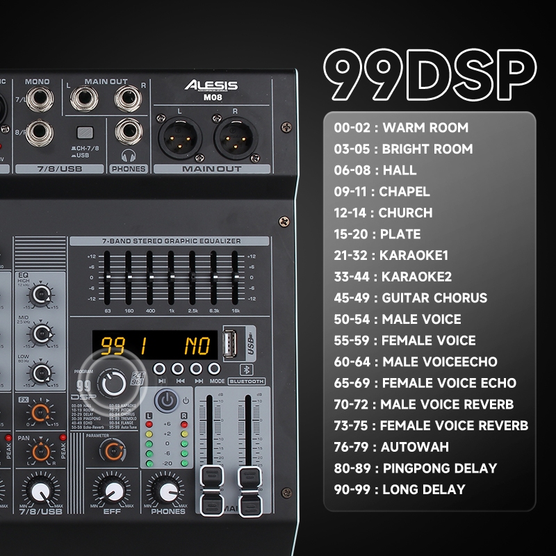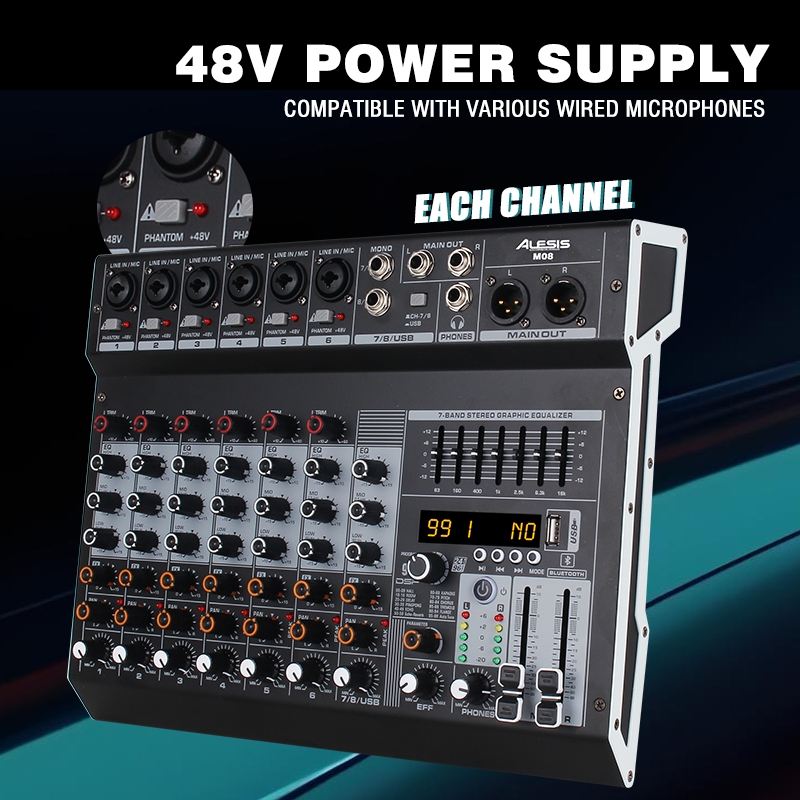 ALESIS M04/M06/M08 4-8 channel mixing console, stable connection with built-in 99DSP effect to meet various usage needs