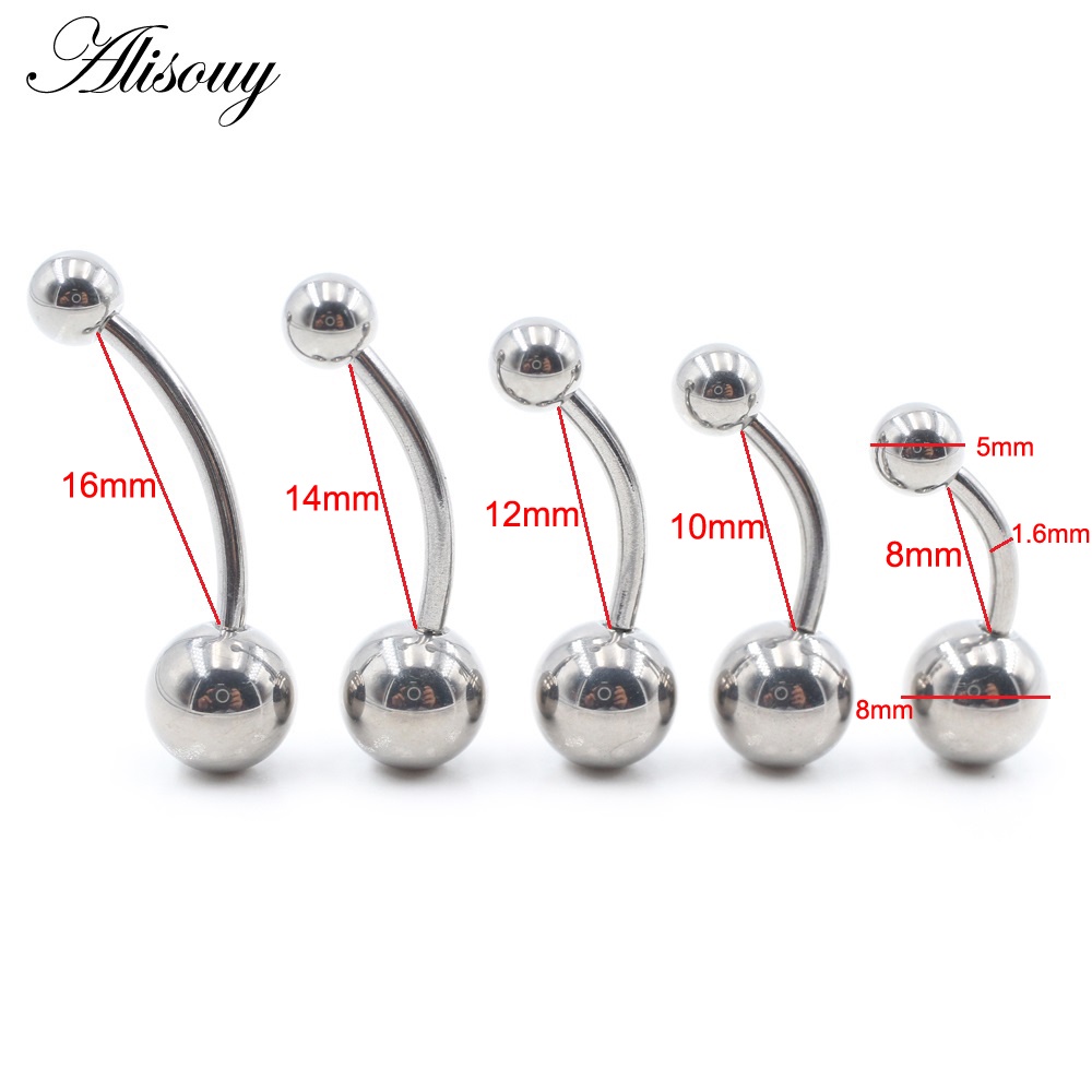 Alisouy 1pc 8-16mm Length G23 Titanium Steel Ball Barbell Sexy Ball Belly Ring Navel Piercing Women Men Button Ring Body Jewelry