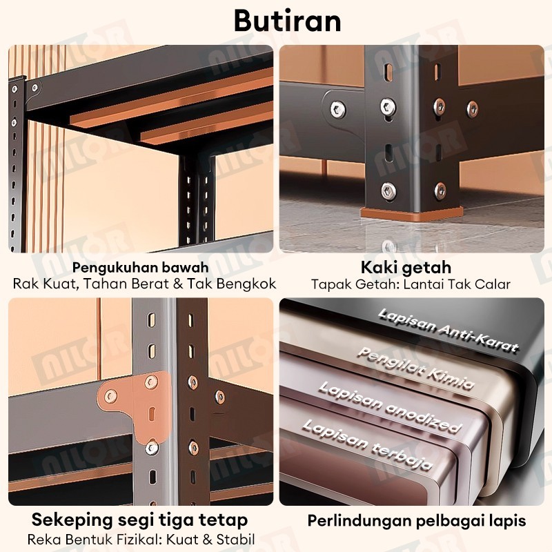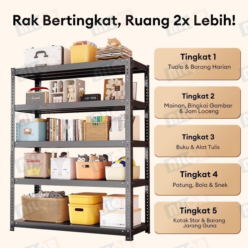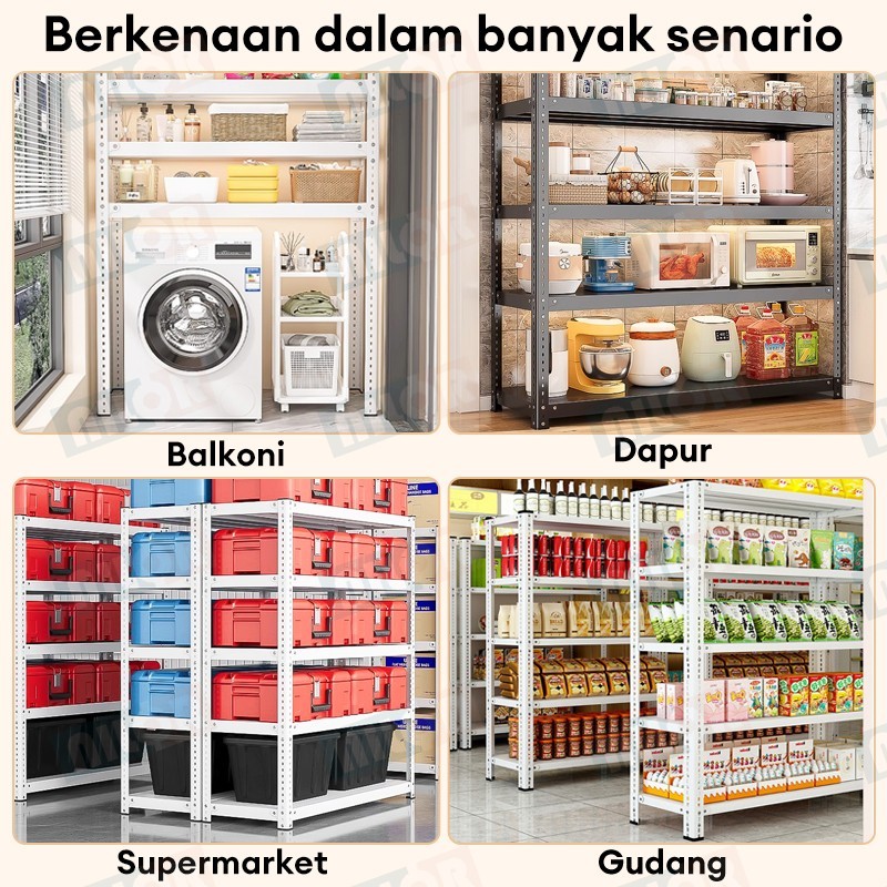 ALL Metal Boltless Rack Home Kitchen Storage Metal Shelf Shelves Rack Organizer Balcony Warehouse Rak Besi Bertingkat 铁架