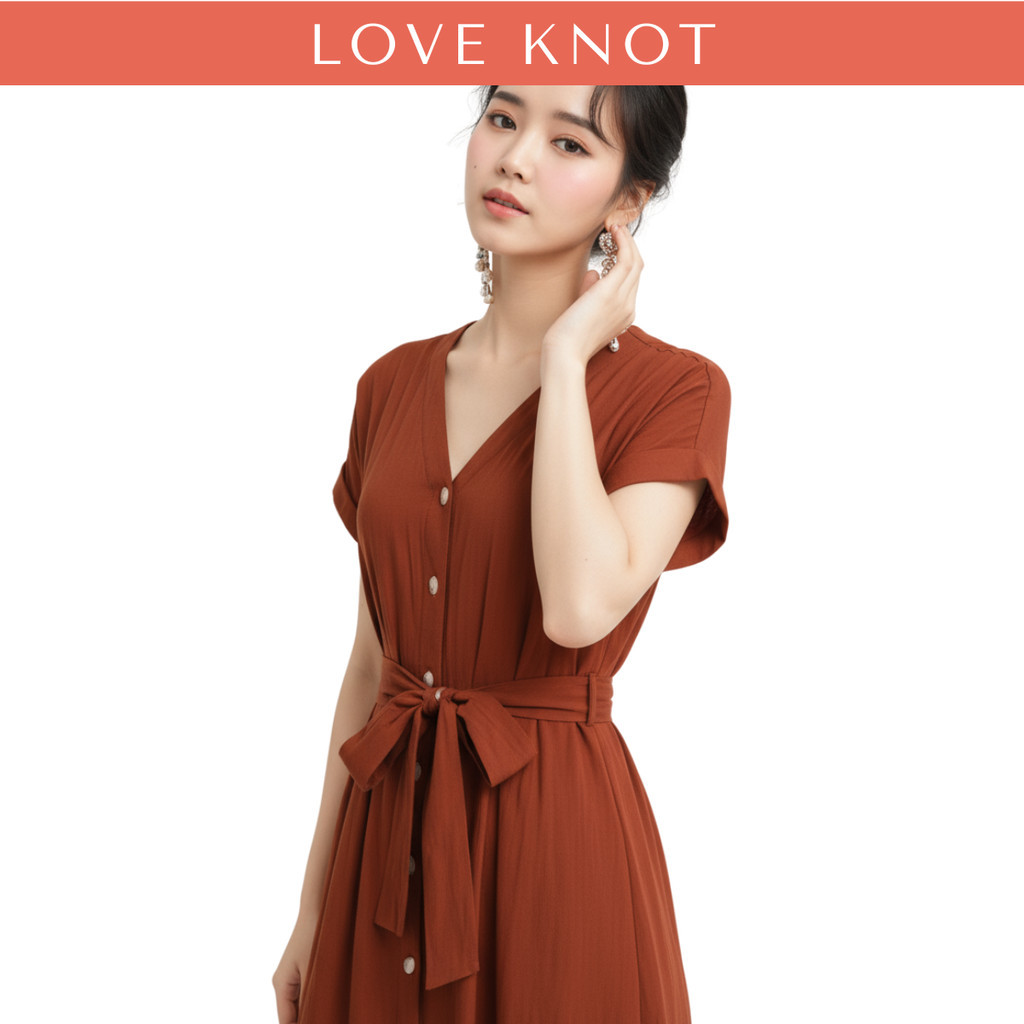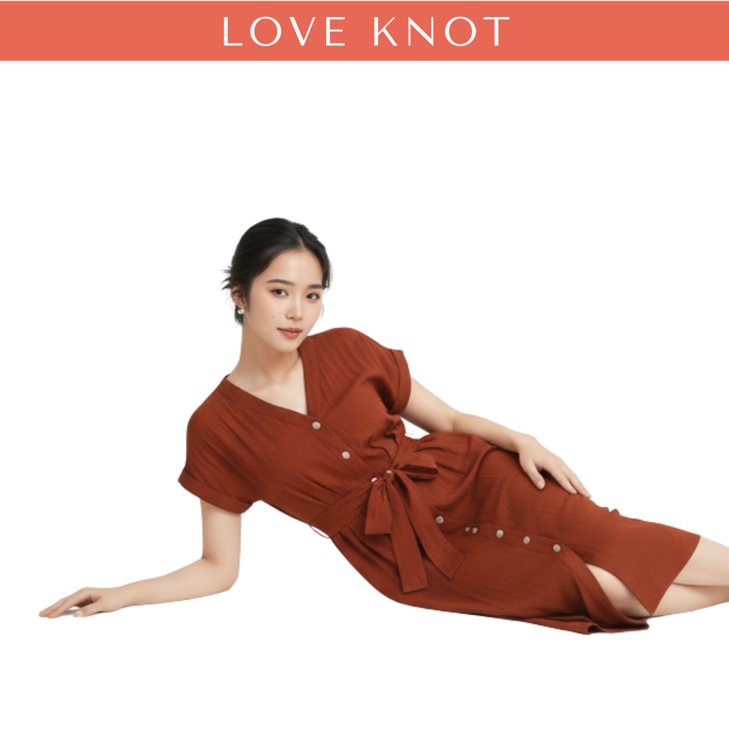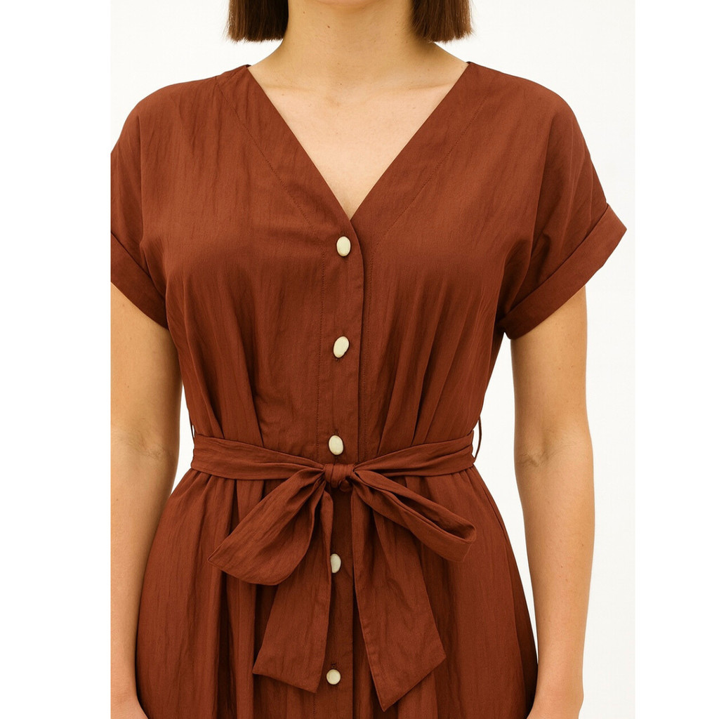 Allara Puff Sleeve Button Down Midi Dress (Brown)