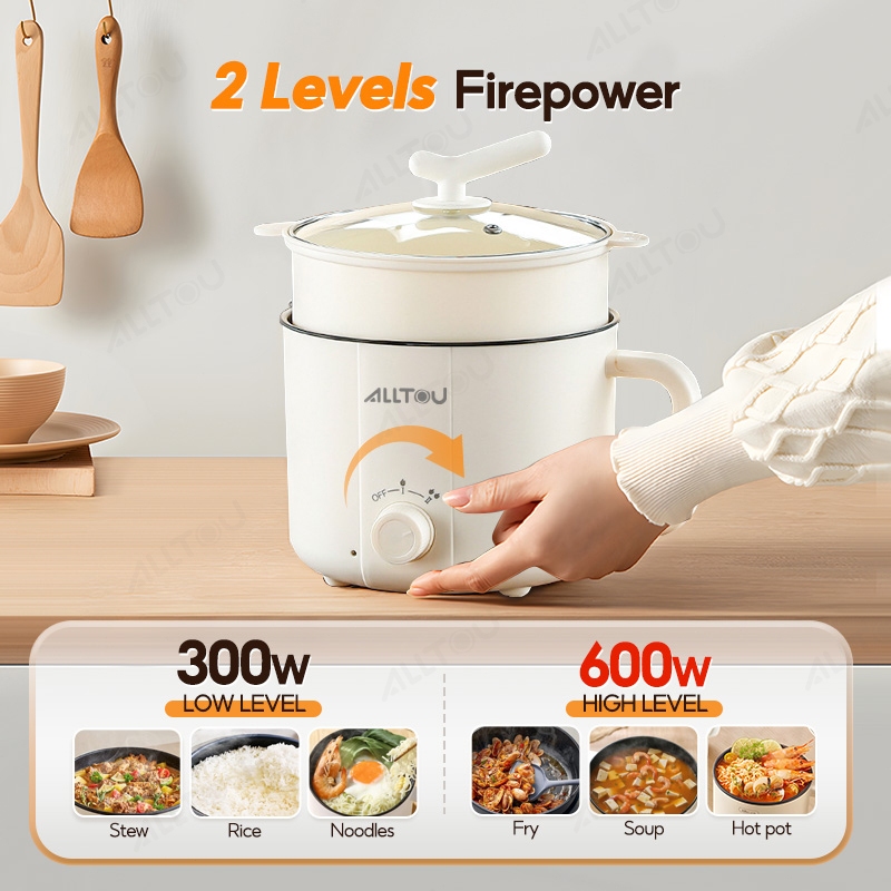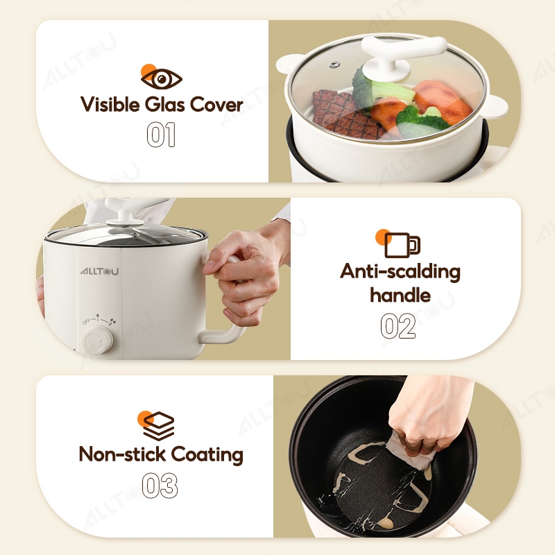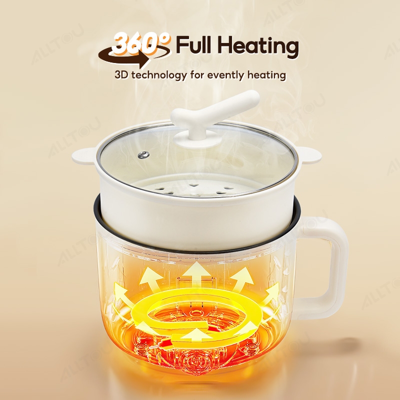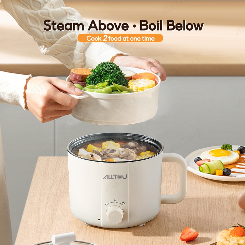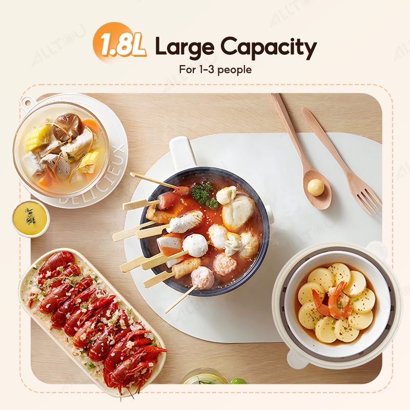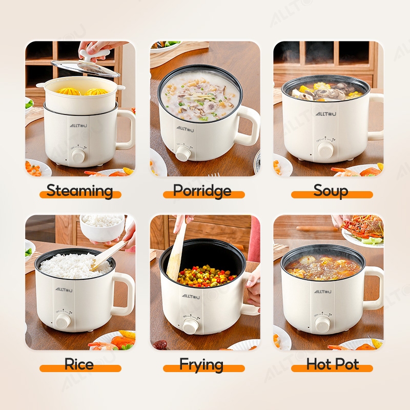 ALLTOU Electric Cooker 1.8L Mini Pan with Steamer Multi-function Periuk Non-Stick Hot Pot Noodles Cooker 电煮锅 泡面锅