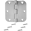 Amazon Basics Interior Door Hinge, Rounded, 3.5 x 3.5 Inch, Satin Nickel - Pack of 18
