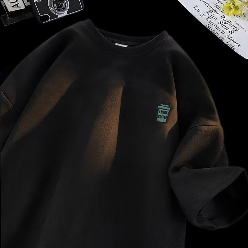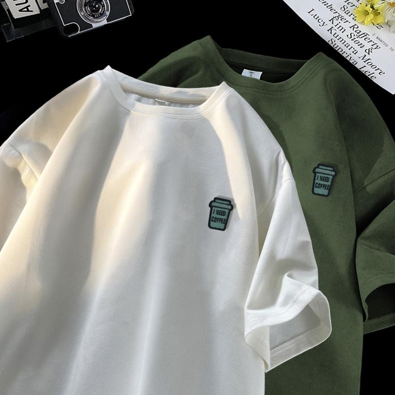 American Retro Street Style I Need Coffee Print Trendy Brand Loose Half Sleeve T-shirt Men's Summer Oversize Round Neck Unisex Top