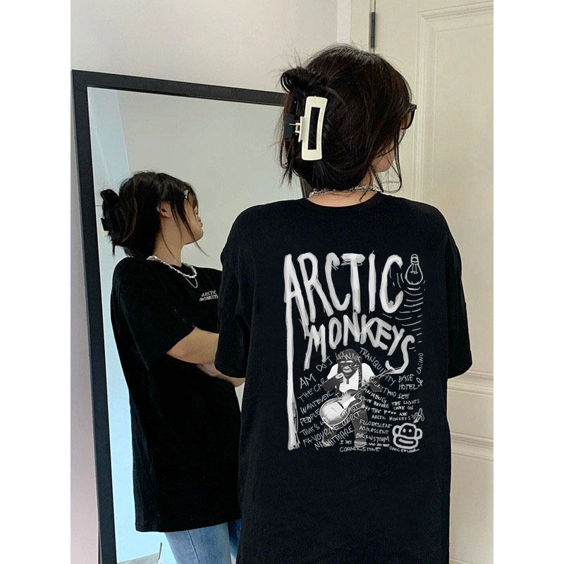 American style women clothing | Oversized Crew Neck T-shirt 100% cotton | Chimpanzees print stylish casual tops vintage