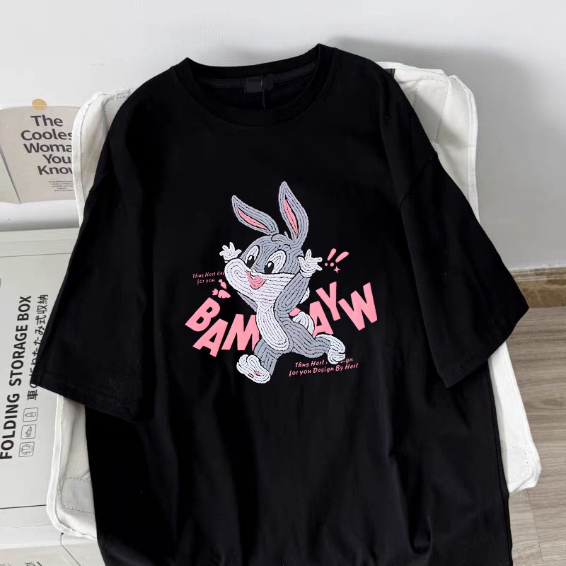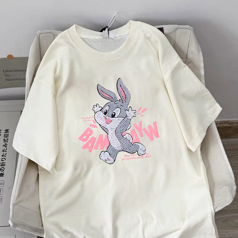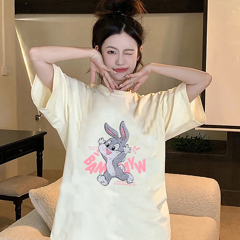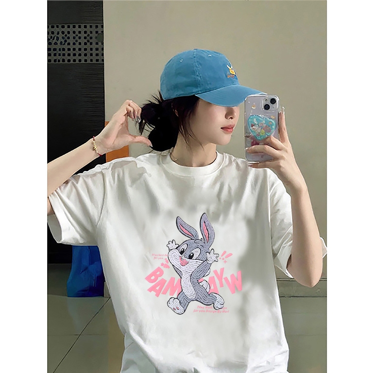 American style women clothing | Oversized Crew Neck T-shirt 100% cotton | rabbit print stylish casual tops y2k