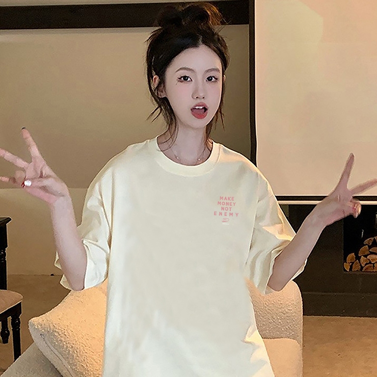 American style women clothing | Oversized Crew Neck T-shirt 100% cotton | retro print stylish casual tops y2k