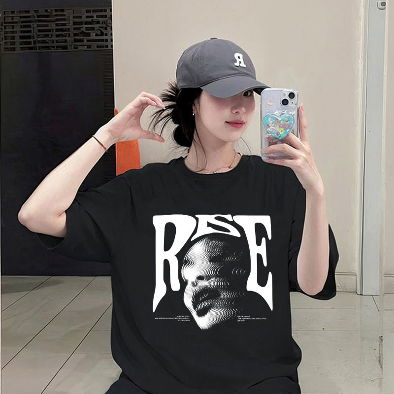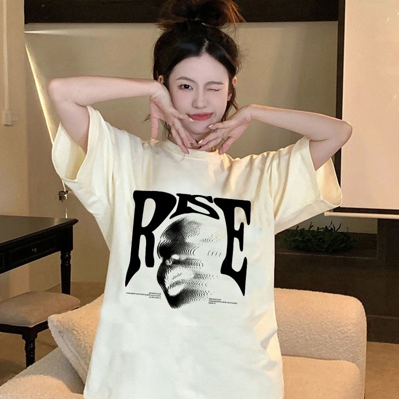 American style women clothing | Oversized Crew Neck T-shirt 100% cotton | RISE print stylish casual tops y2k