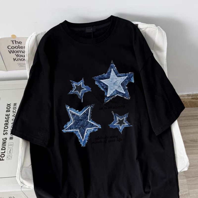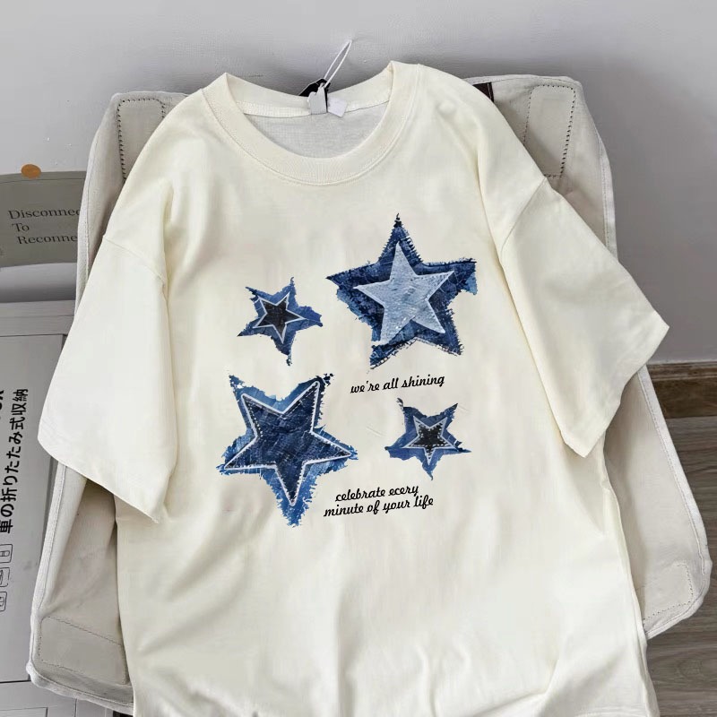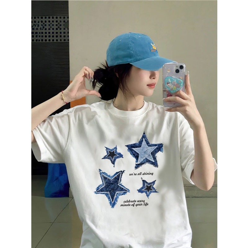 American style women clothing | Oversized Crew Neck T-shirt 100% cotton | START print stylish casual tops y2k