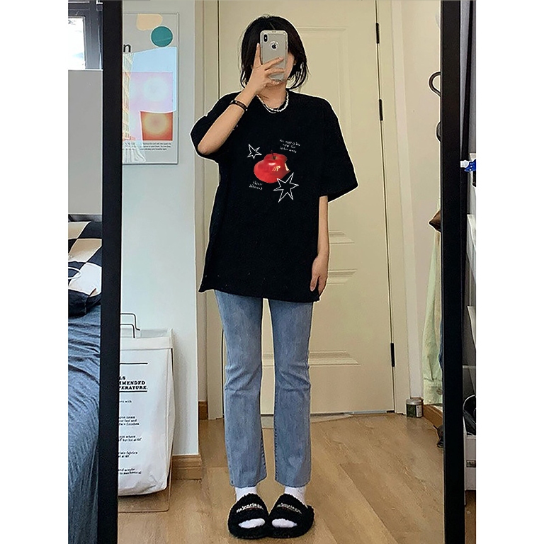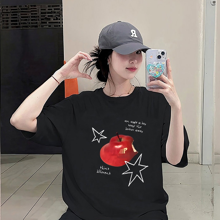 Amerika style women clothing | Oversized Crew Neck T-shirt 100% cotton | apple print stylish casual tops y2k