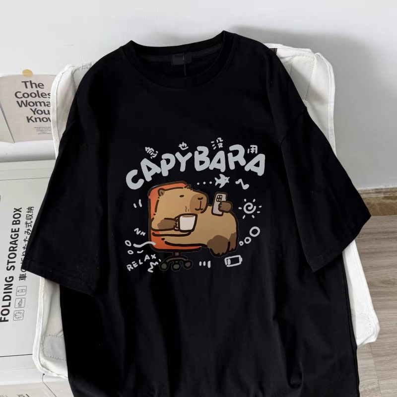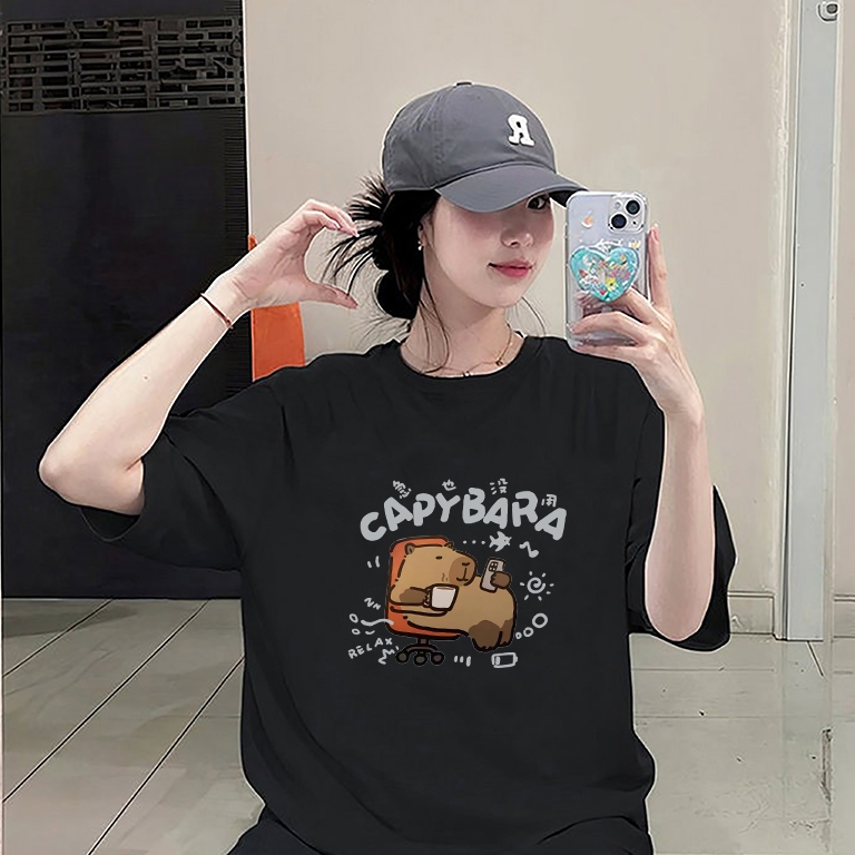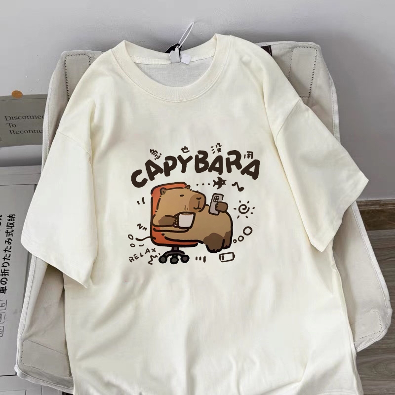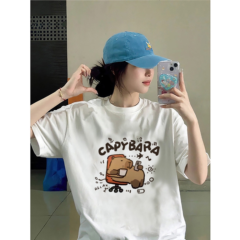 Amerika style women clothing | Oversized Crew Neck T-shirt 100% cotton | capibara print stylish casual tops y2k
