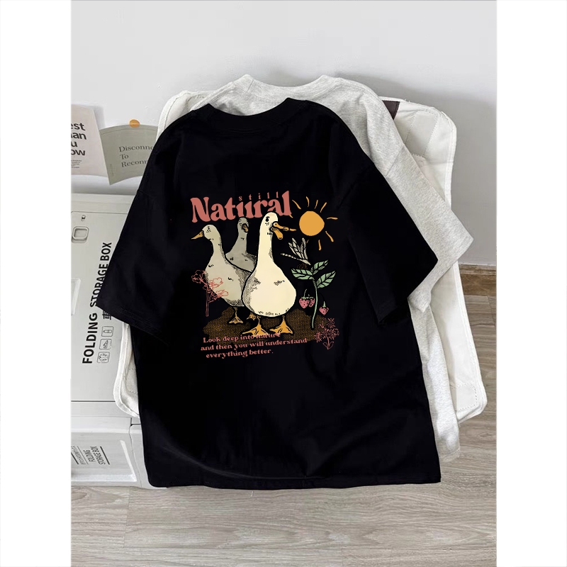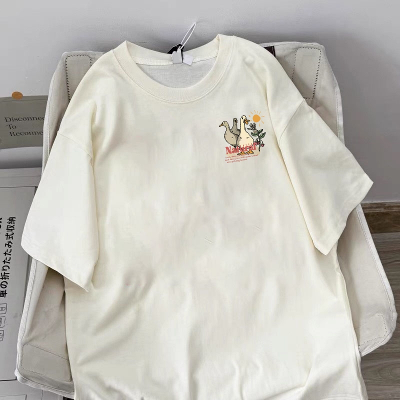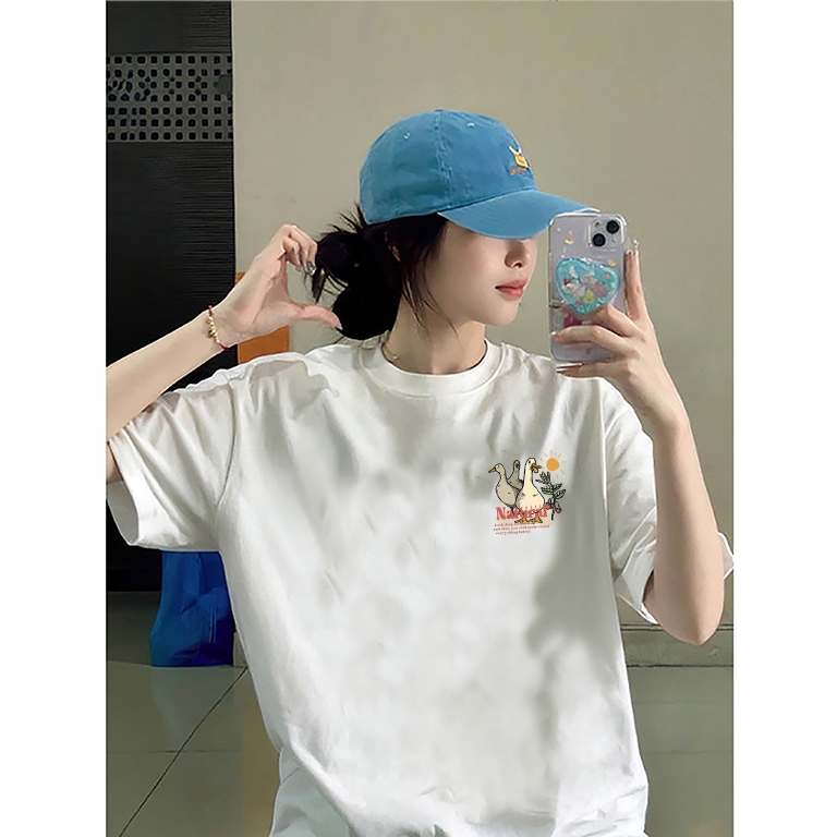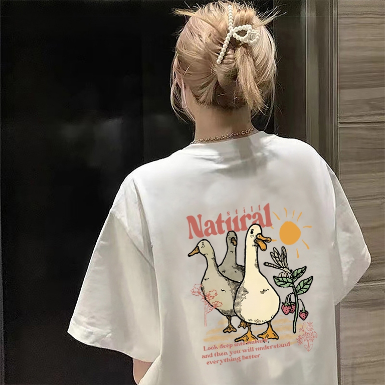 Amerika style women clothing | Oversized Crew Neck T-shirt 100% cotton | Goose print stylish casual tops y2k