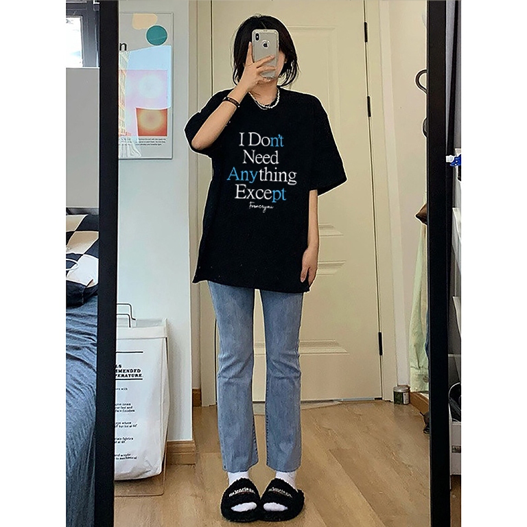 Amerika style women clothing | Oversized Crew Neck T-shirt 100% cotton | letter print stylish casual tops