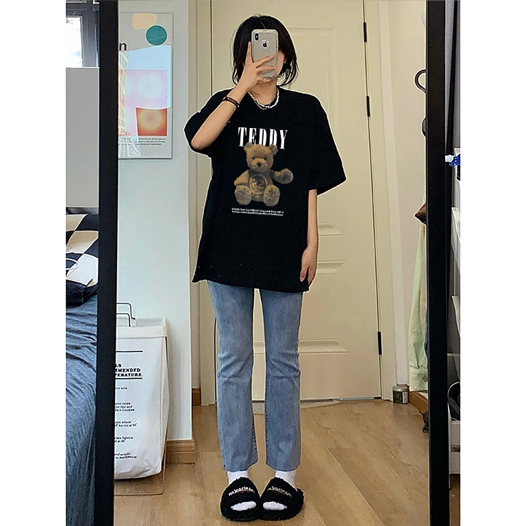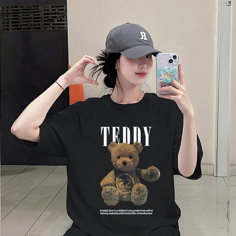 Amerika style women clothing | Oversized Crew Neck T-shirt 100% cotton | teddy bear print stylish casual tops y2k