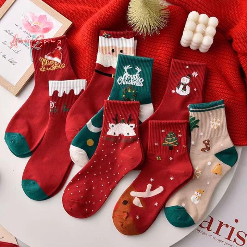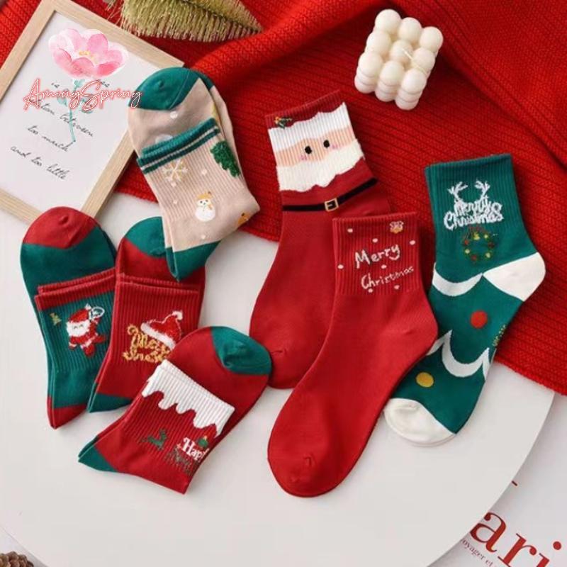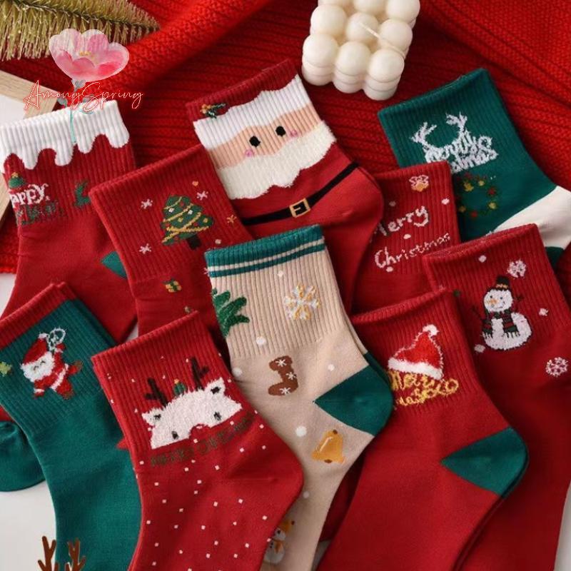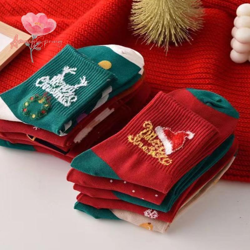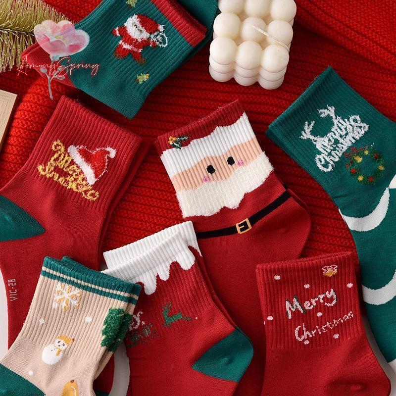 AmongSpring 5-Pair Set of Christmas-Themed Mid-Calf Socks for Women