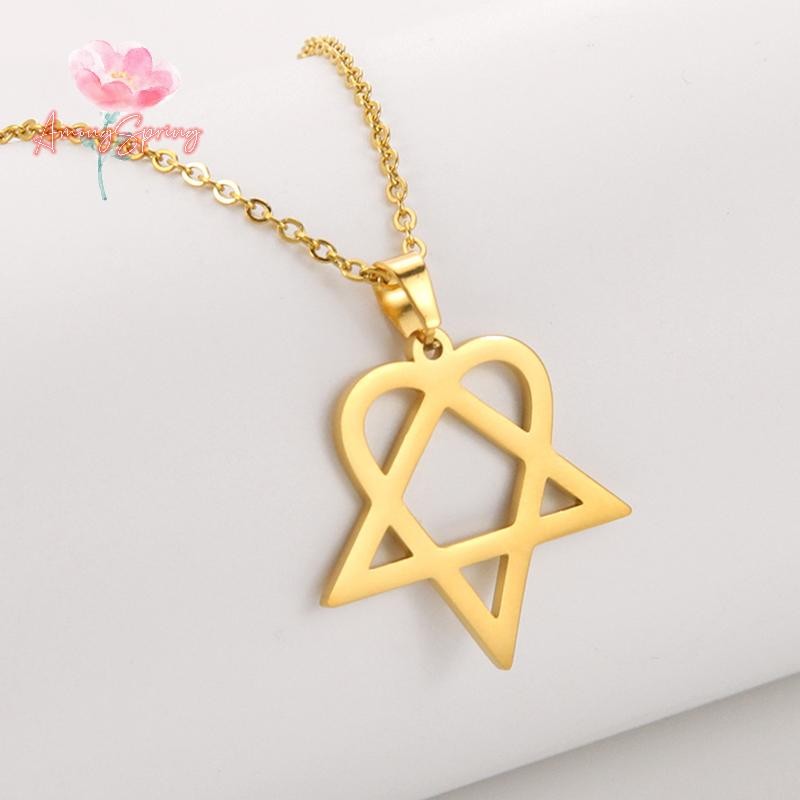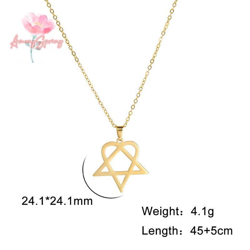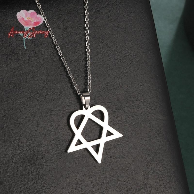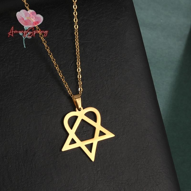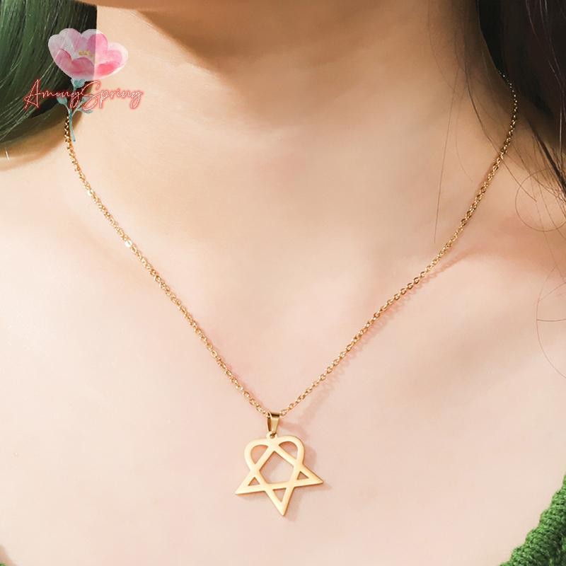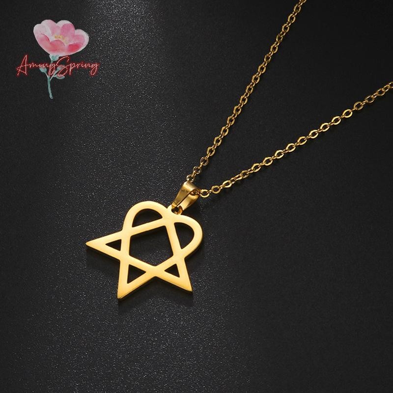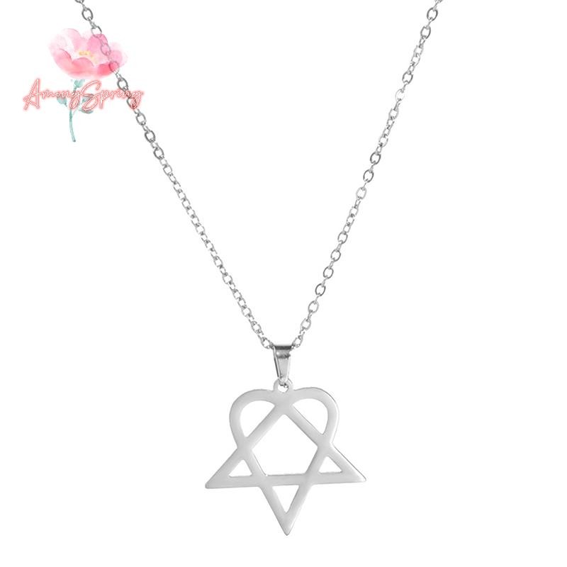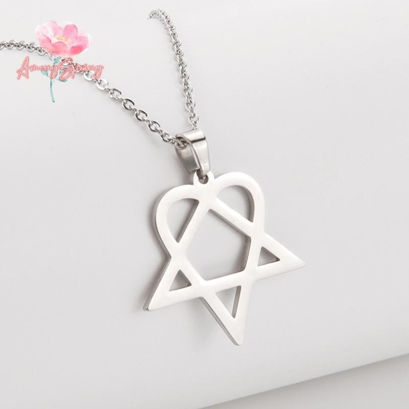 AmongSpring> Classic simple Heartagram Star Heart Stainless Steel Pendant Necklace jewelry new