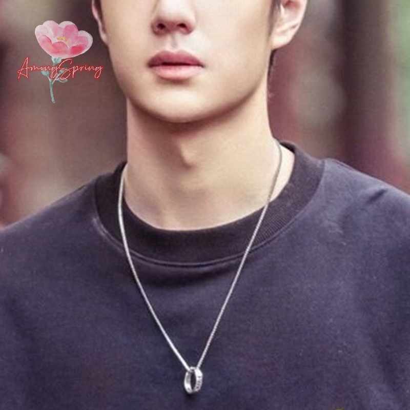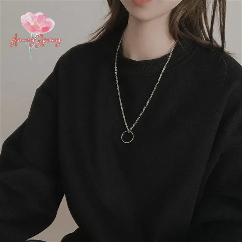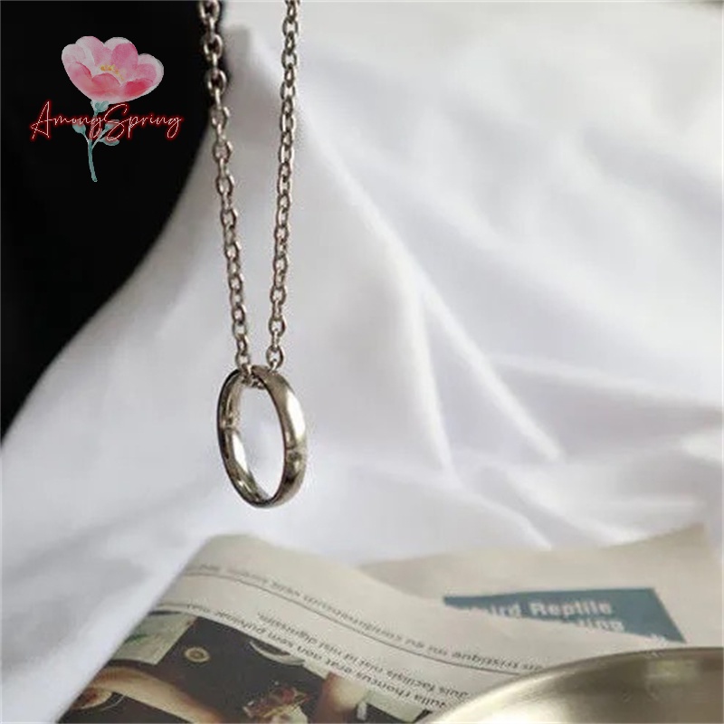 AmongSpring> Fashion Ring Pendant Necklace Metal Silver Color Couple Chain Necklaces Men Women Hip Hop Jewelry Gift new