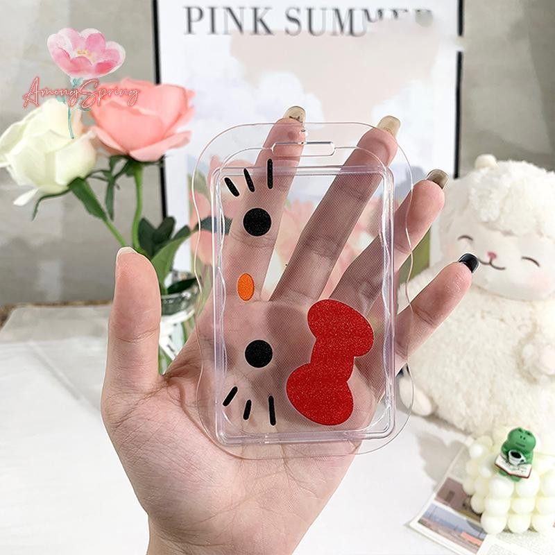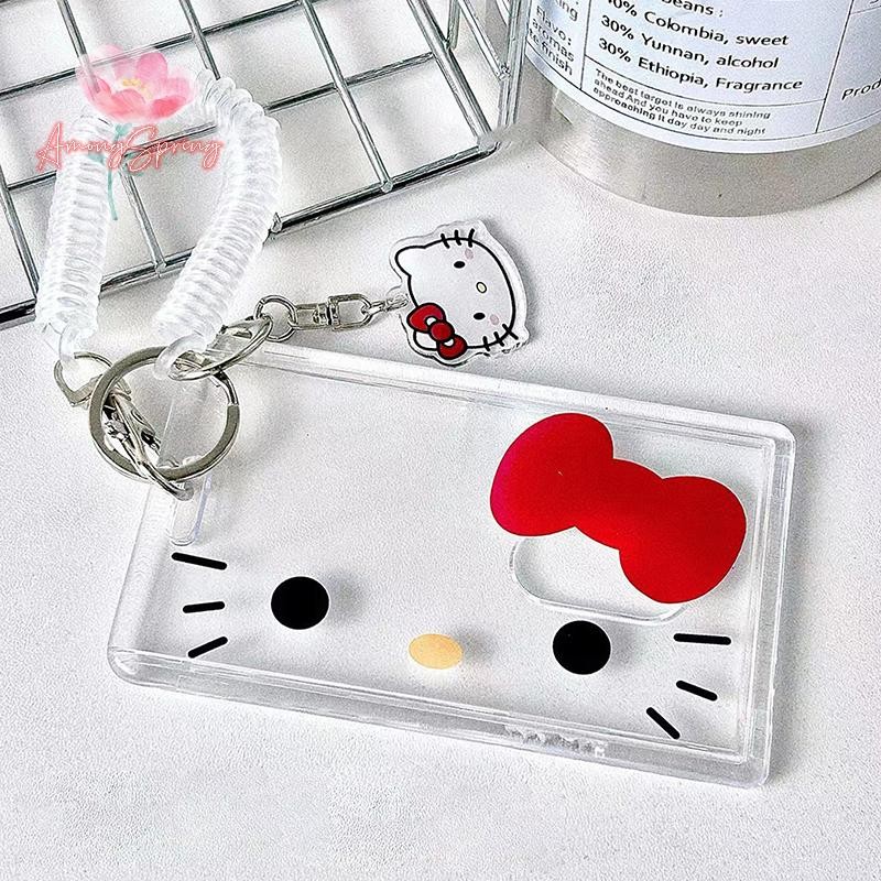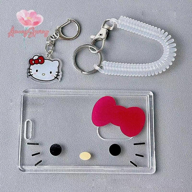AmongSpring> Hello Kitty Card Holder Cartoon Cute Badge Credit Card Holders Badge Credit Bank ID Holders Women Keychain Bus Card Cover Case new