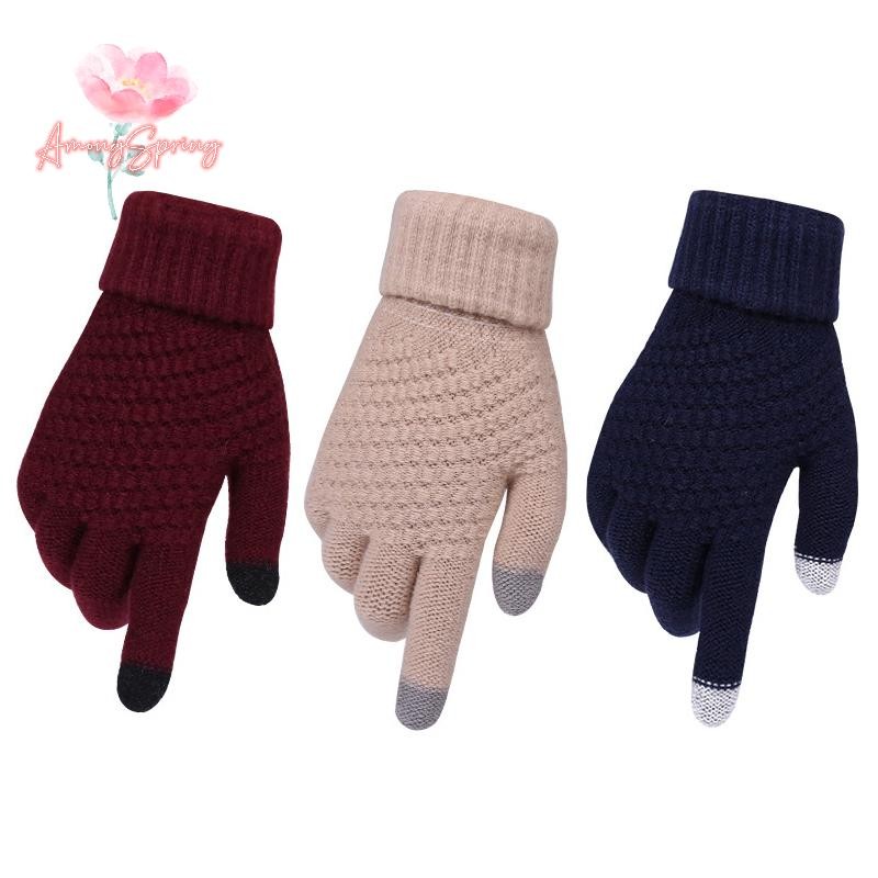 AmongSpring> Winter Touchscreen Gloves Women Men Warm Stretch Knit Mittens Imitation Wool Full Finger Guantes Crochet Luvas Thicken Gloves new