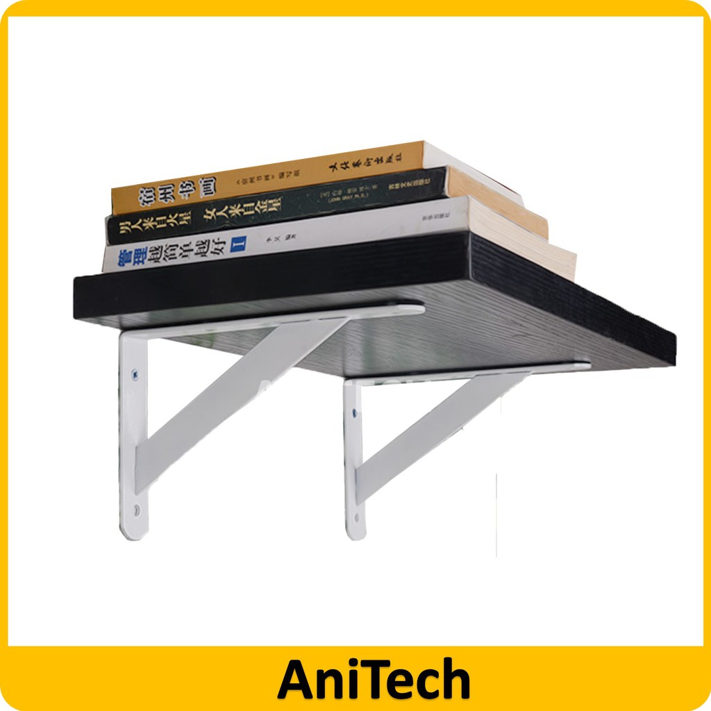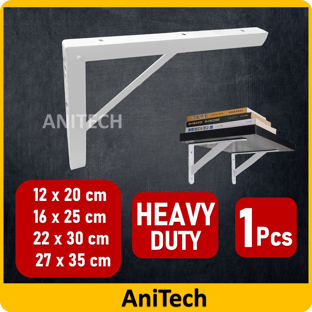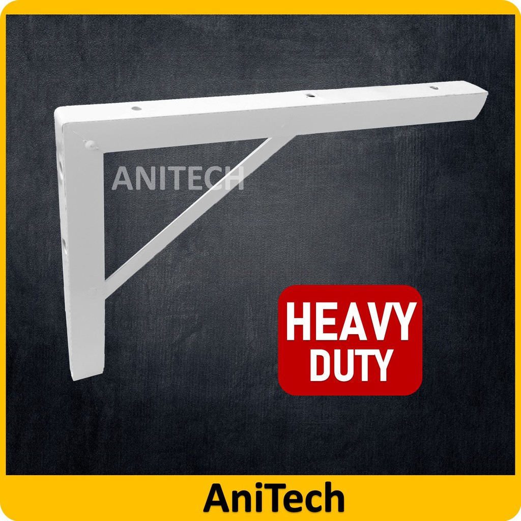 ANITECH 1 Pcs Heavy Duty White Coat Wall Shelf Shelving L Bracket Wall Mount Rack Racking Support Iron L