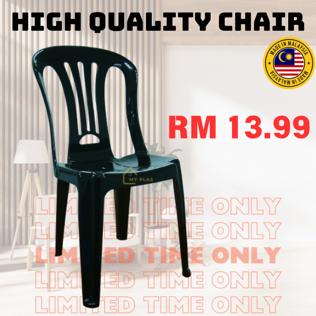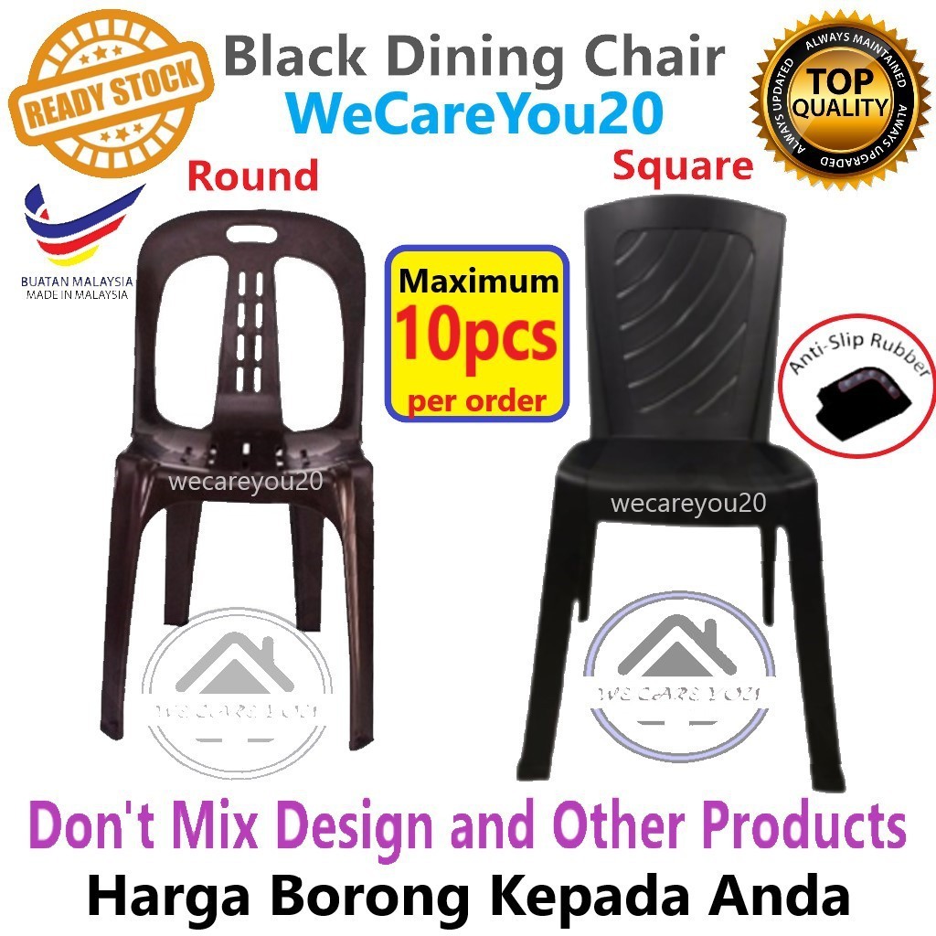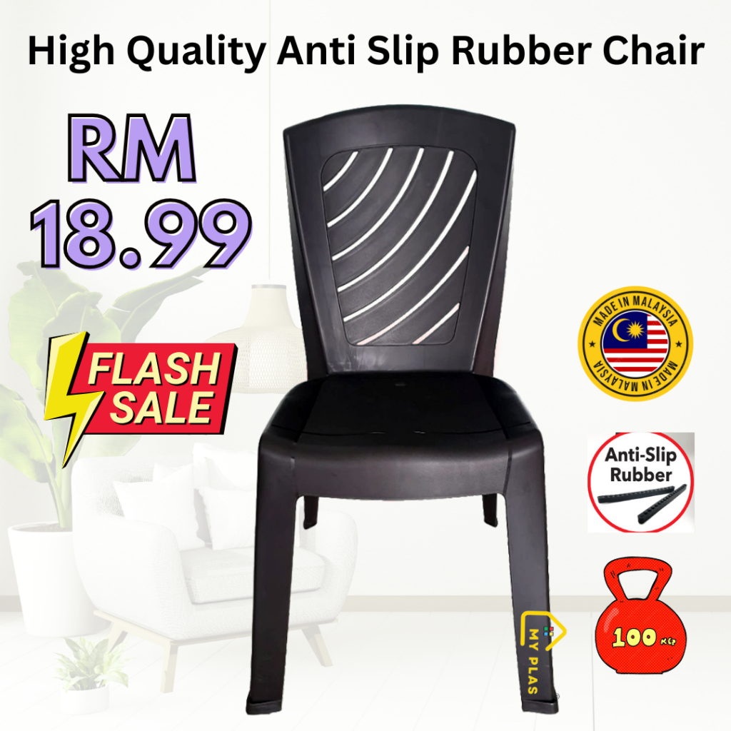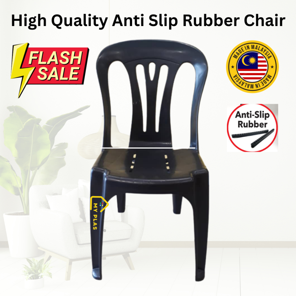 Anti Slip Plastic Chair/Kerusi Makan/Kerusi Plastik/Dining Chair/Kerusi Sandar Plastik/Black Chair with Rubber