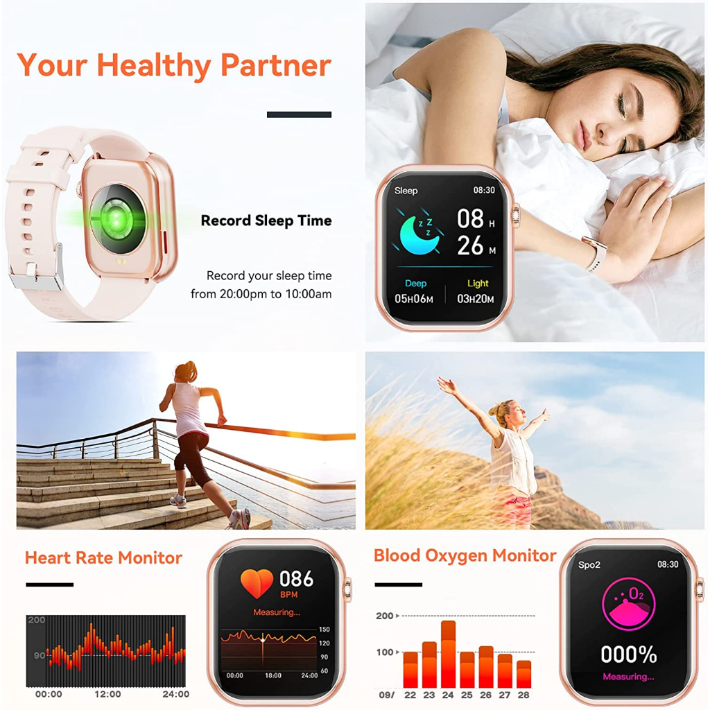 Aolon Foom Lite Bluetooth Smart Watch (Answer/Make Calls), 2023 Newest 1.83 Inch Fitness Tracker, Heart Rate/Sleep Monitor/Pedometer/Calories, Multiple Sports Modes, Waterproof