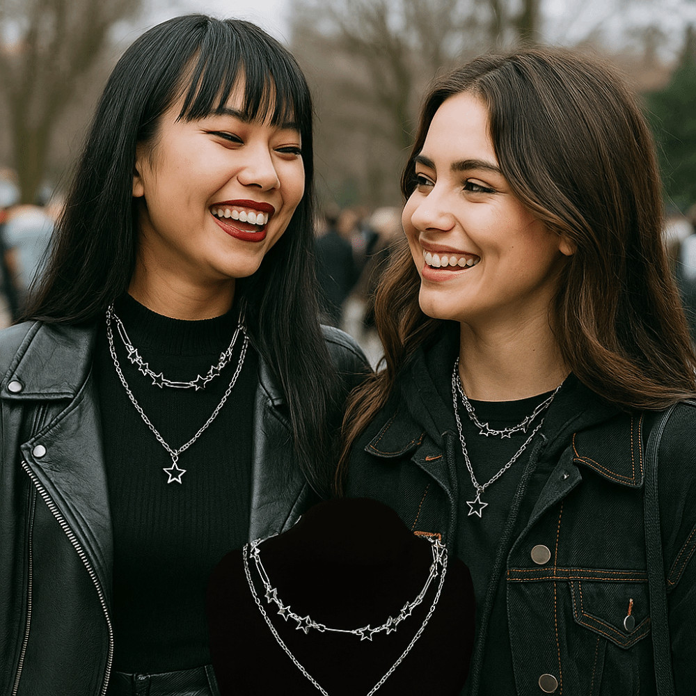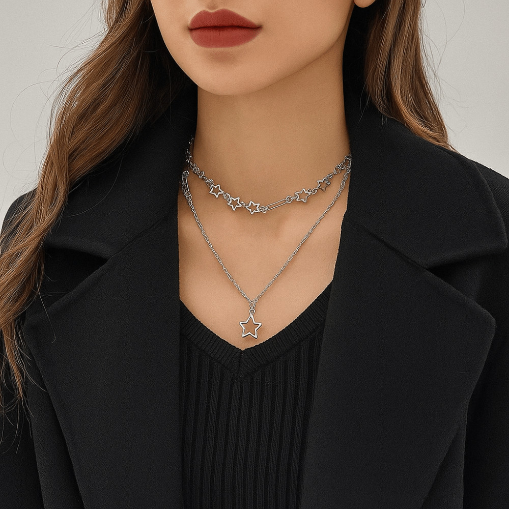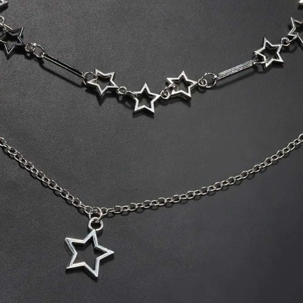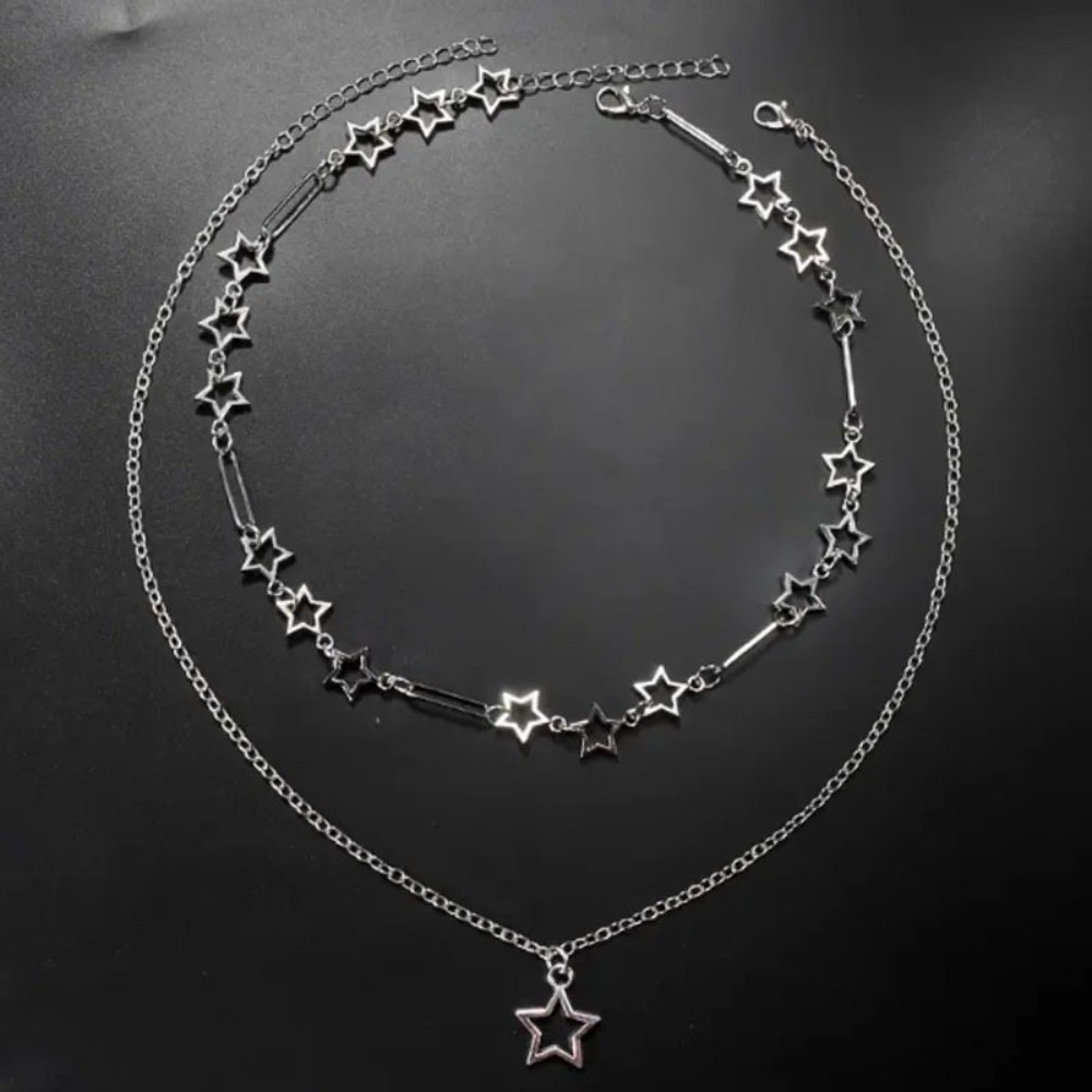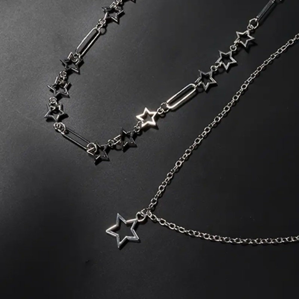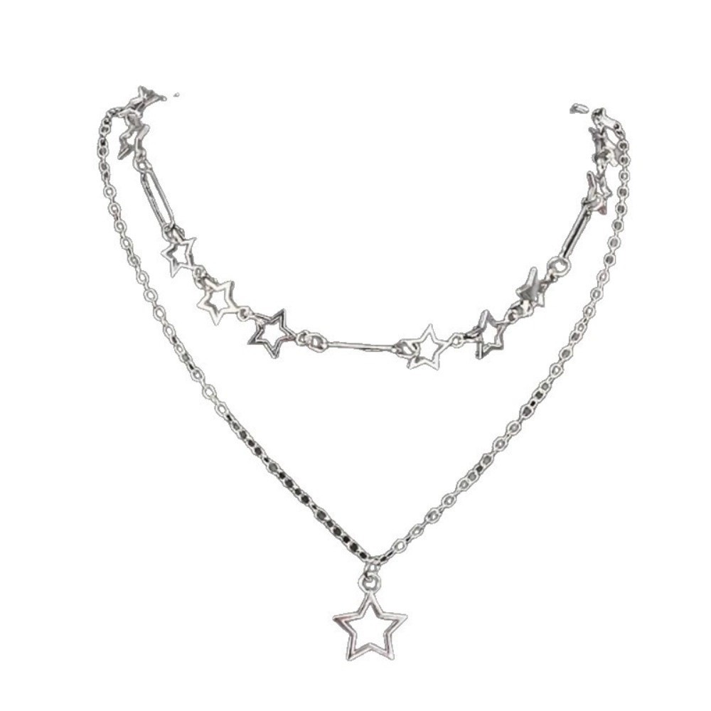 APPEAR Punk Style Necklace, Y2K Style Hollowed Out Stars Personalized Necklace, Accessories Gifts Double Layer Chain Design Hollowed Out Chain Holiday Party