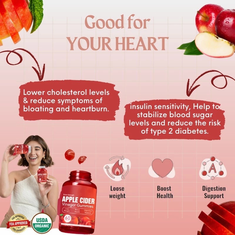 Apple Cider Vinegar Gummies Natural Cleansing Supplements Fat Buster Detox For Weight Loss Healthy Slimming 60pcs