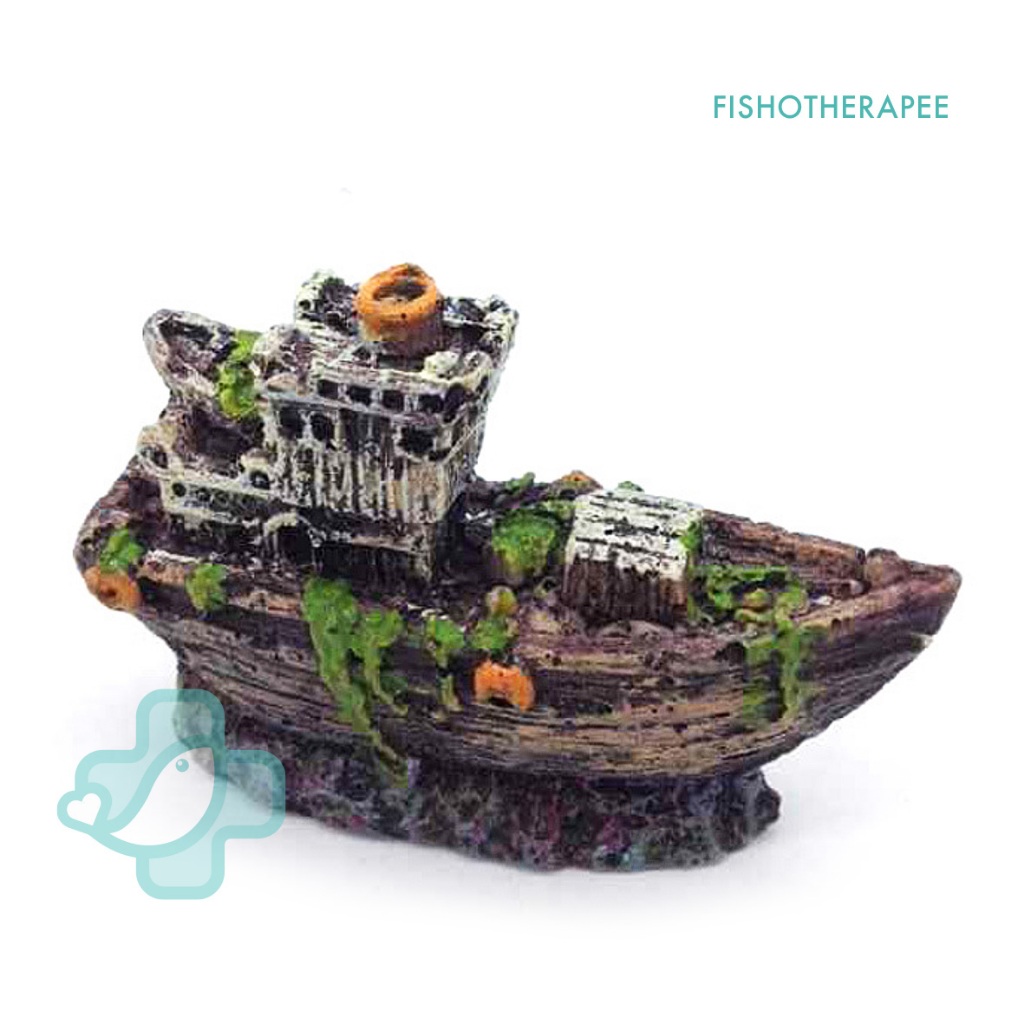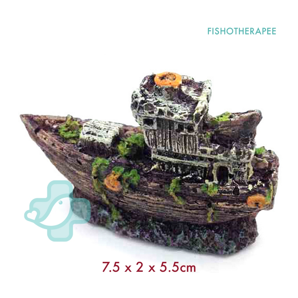 Aquarium Resin Ship Wreck Ornament Decoration Ornament Deco Boat Hiasan Kapal Akuarium Bot Tank Decor.