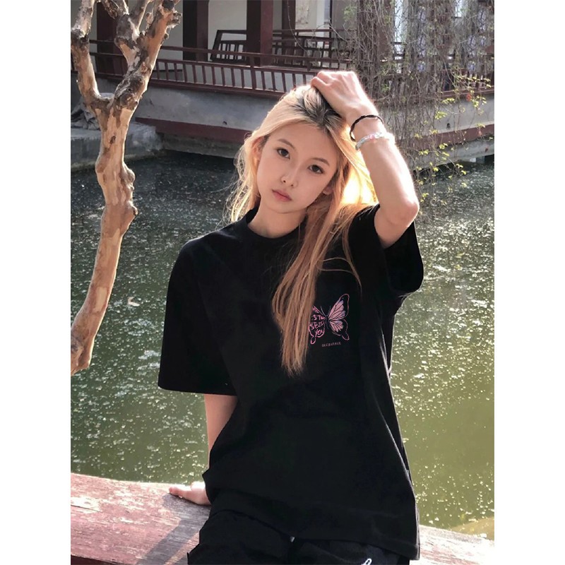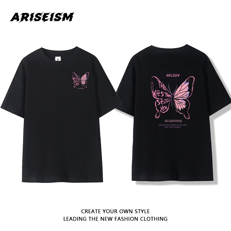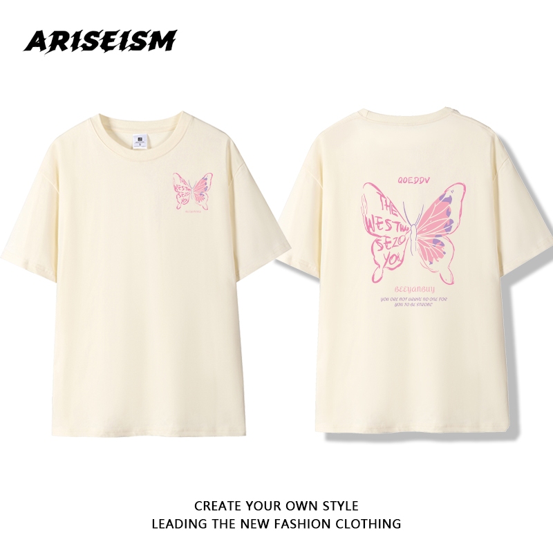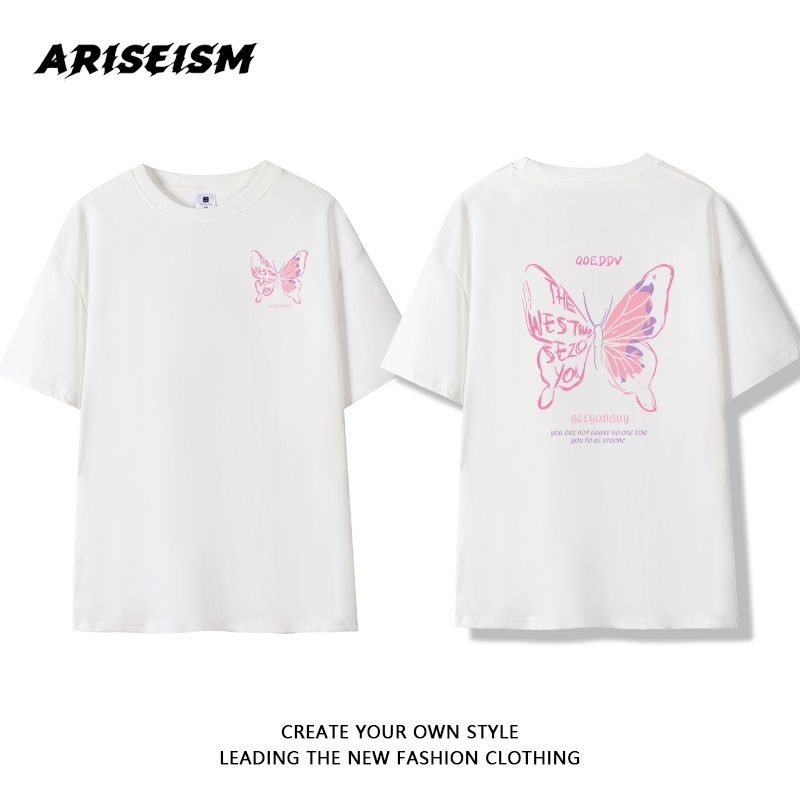 ARISEISM Oversize T Shirt Woman Summer Short Sleeves butterfly print College Style Shirt Korean OOTD