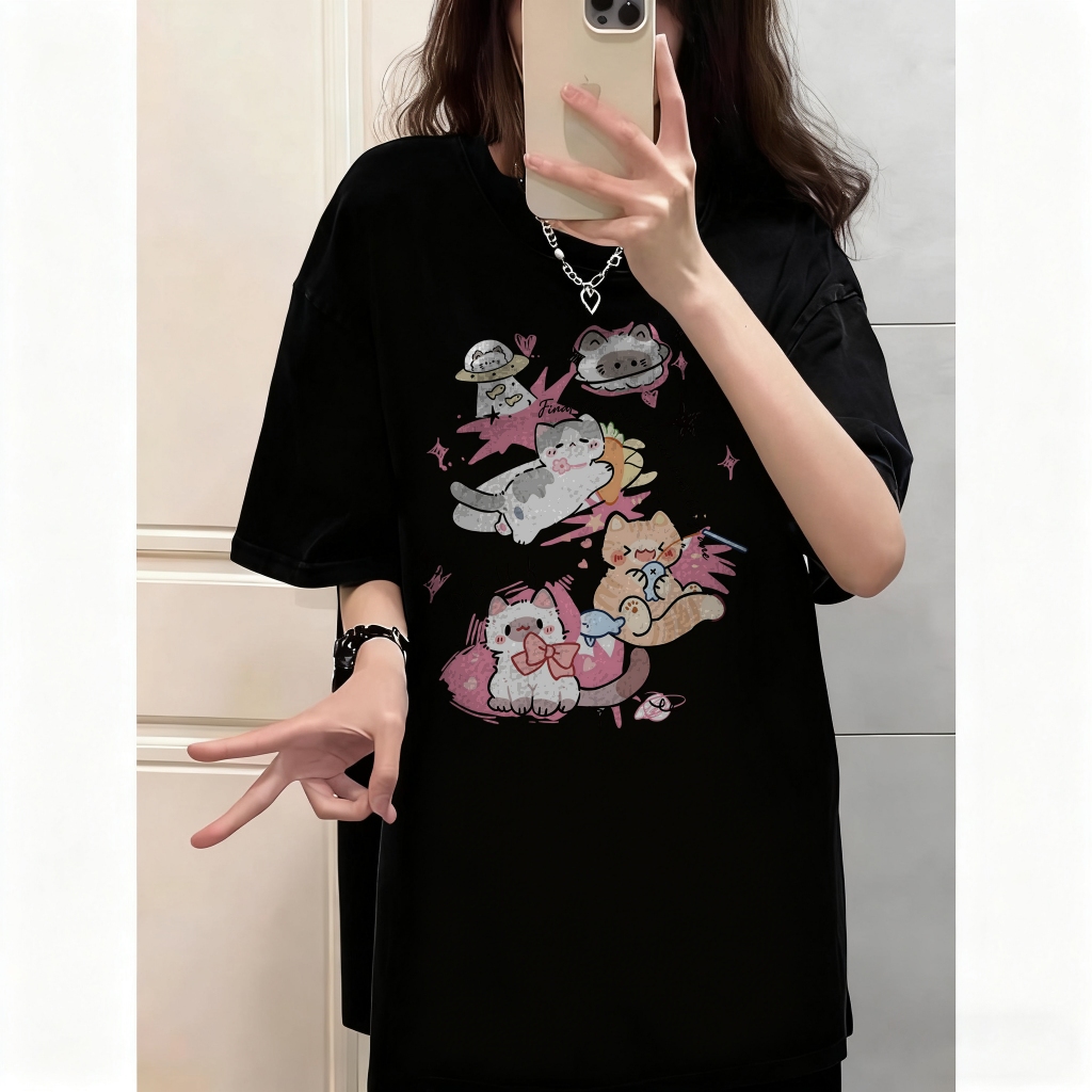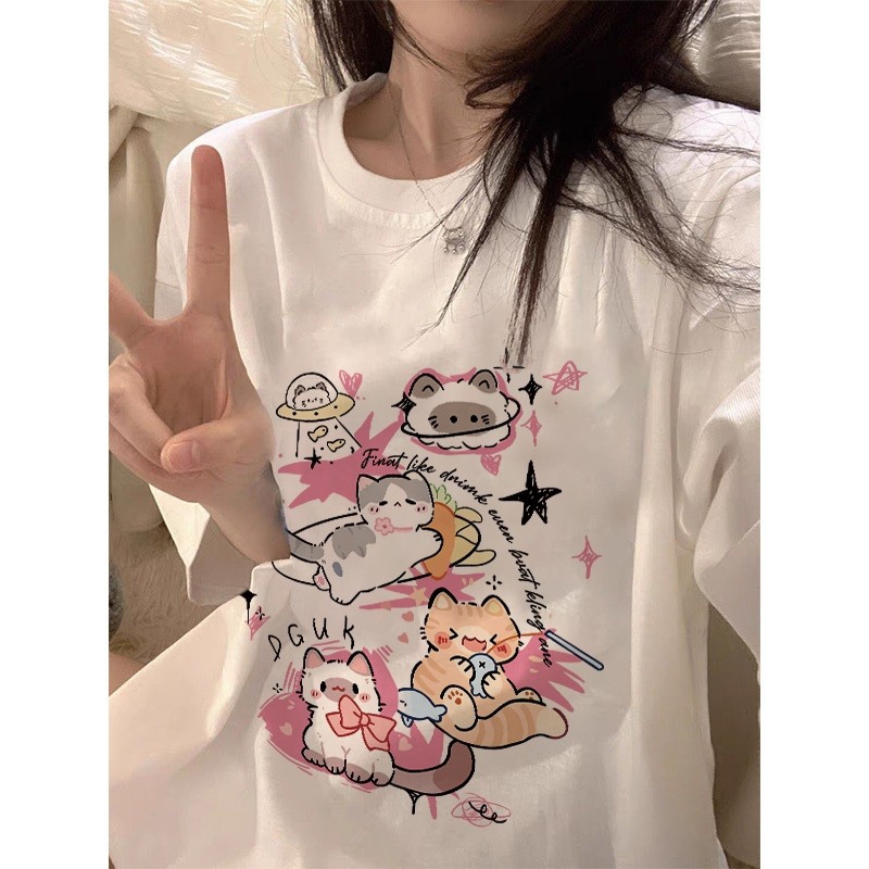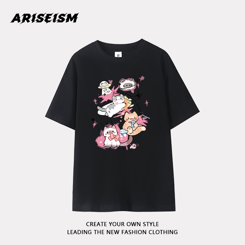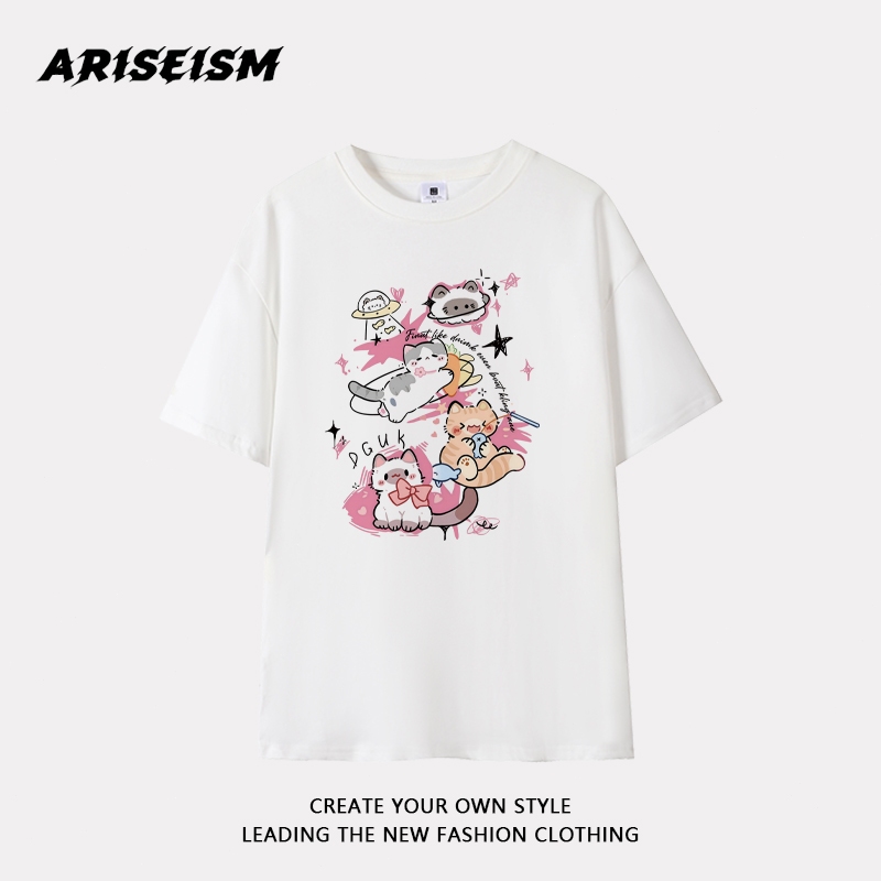 ARISEISM ????????? ? ????? Woman Korean Graffiti cat Printed Perempuan Summer Casual Loose T-shirt