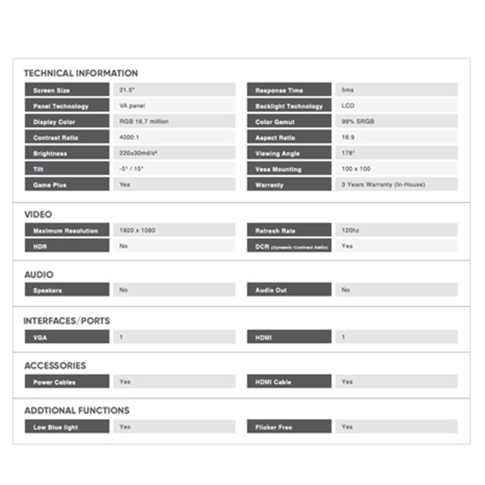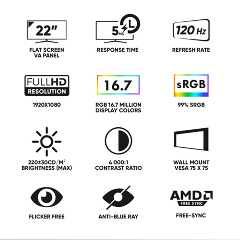 Armaggeddon 22" 120Hz 5ms VA Gaming Monitor | PF22HD SUPER (2025)