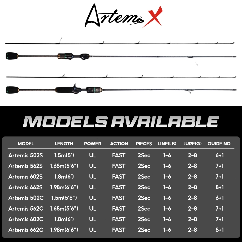 Artemis Rod Casting Fishing Rod Spinning Joran Pancing UL Power Solid Tip 1-6LB Micro-jigging Rod