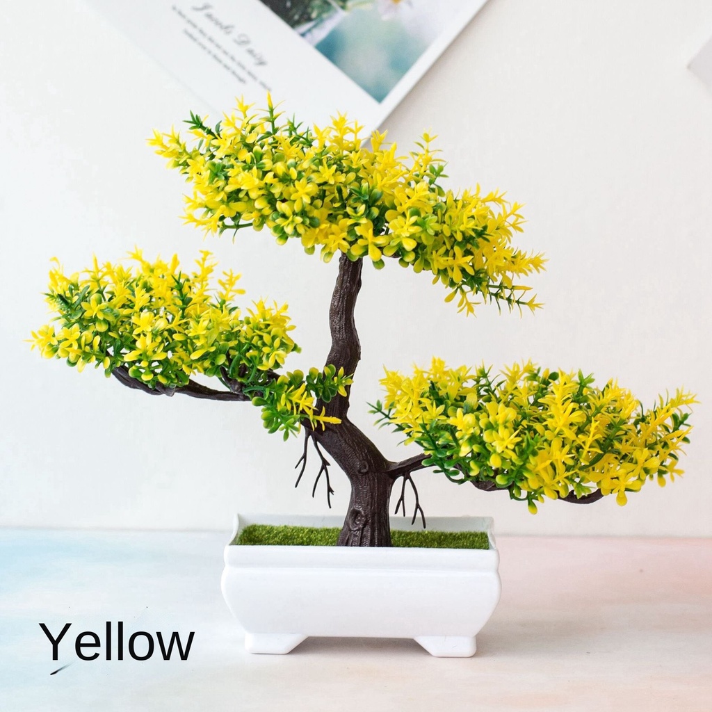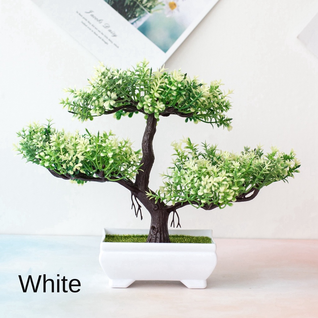 Artificial Bonsai Fake Potted Pine Tree Plant Bunga Artificial Flower With White Pot Home/office Home Decoration Bonsai Three-Fork