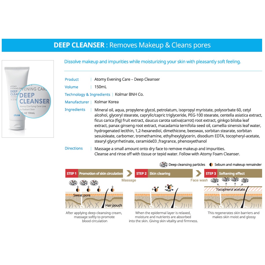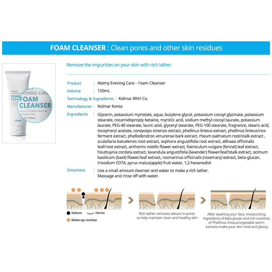 Atomy Cleanser Evening Care- Foam and Deep 150ml