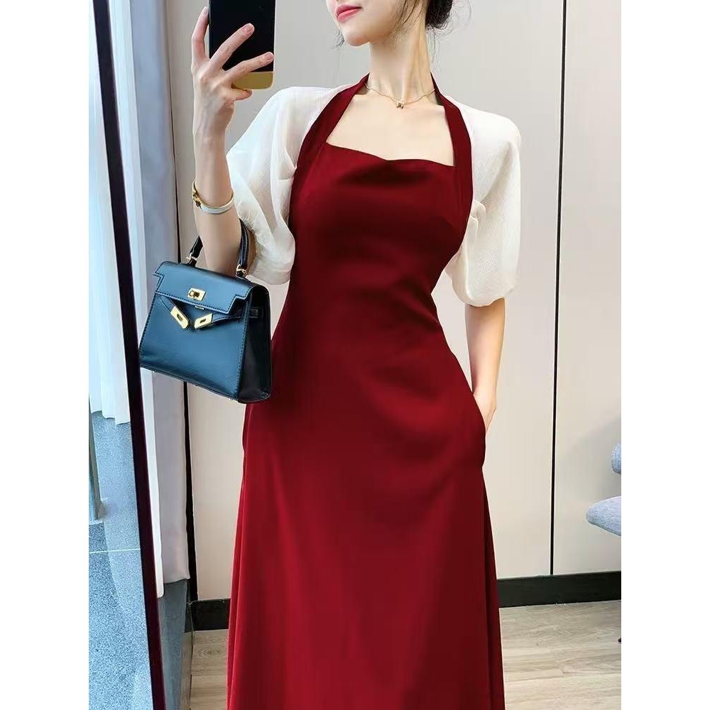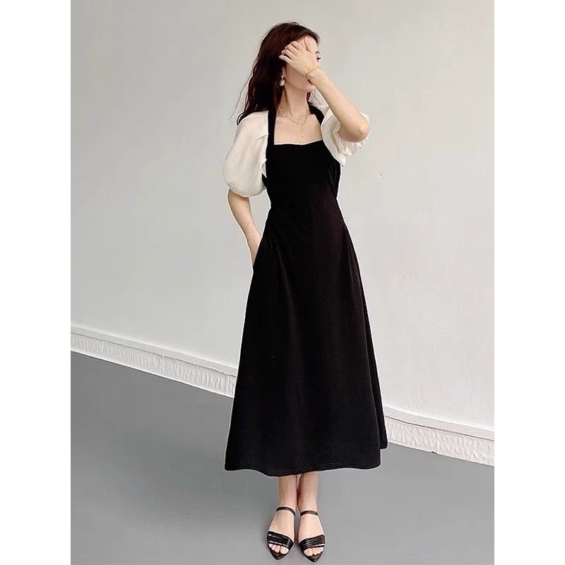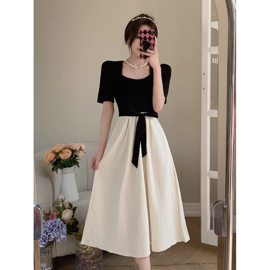 Audrey Hepburn-Inspired Long Black and White Formal Dress with Sleeves