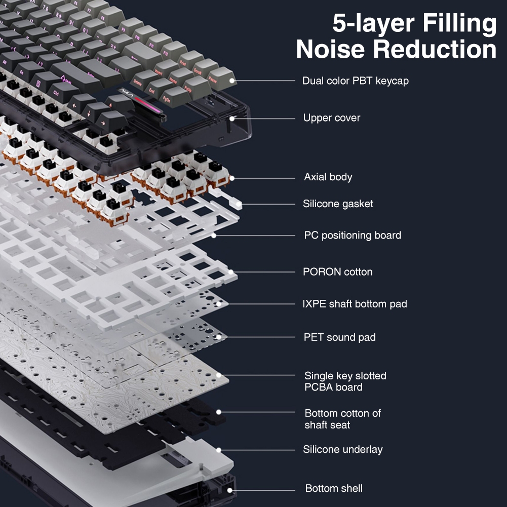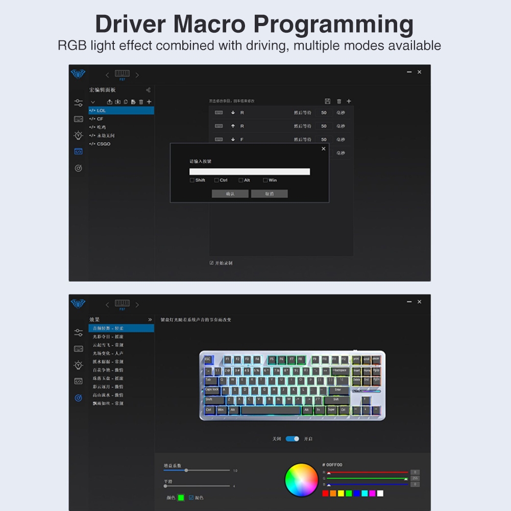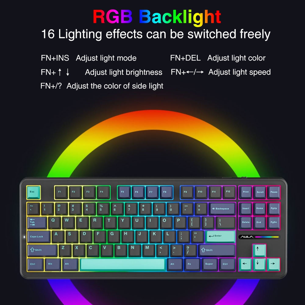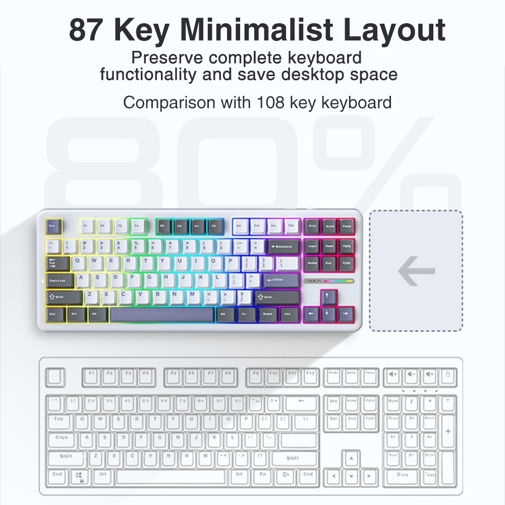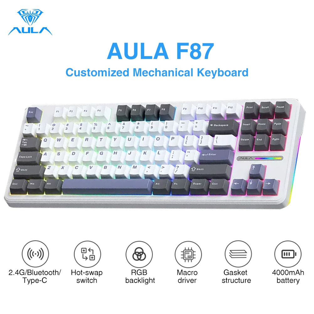 AULA F87 F87pro 87Keys Tri-Mode Mechanical Keyboard RGB Hot-Swap Wireless Customized Keyboard Wired/2.4G/Bluetooth Side Engraved Keycaps Support Driver Software Grey Wood Switch V4
