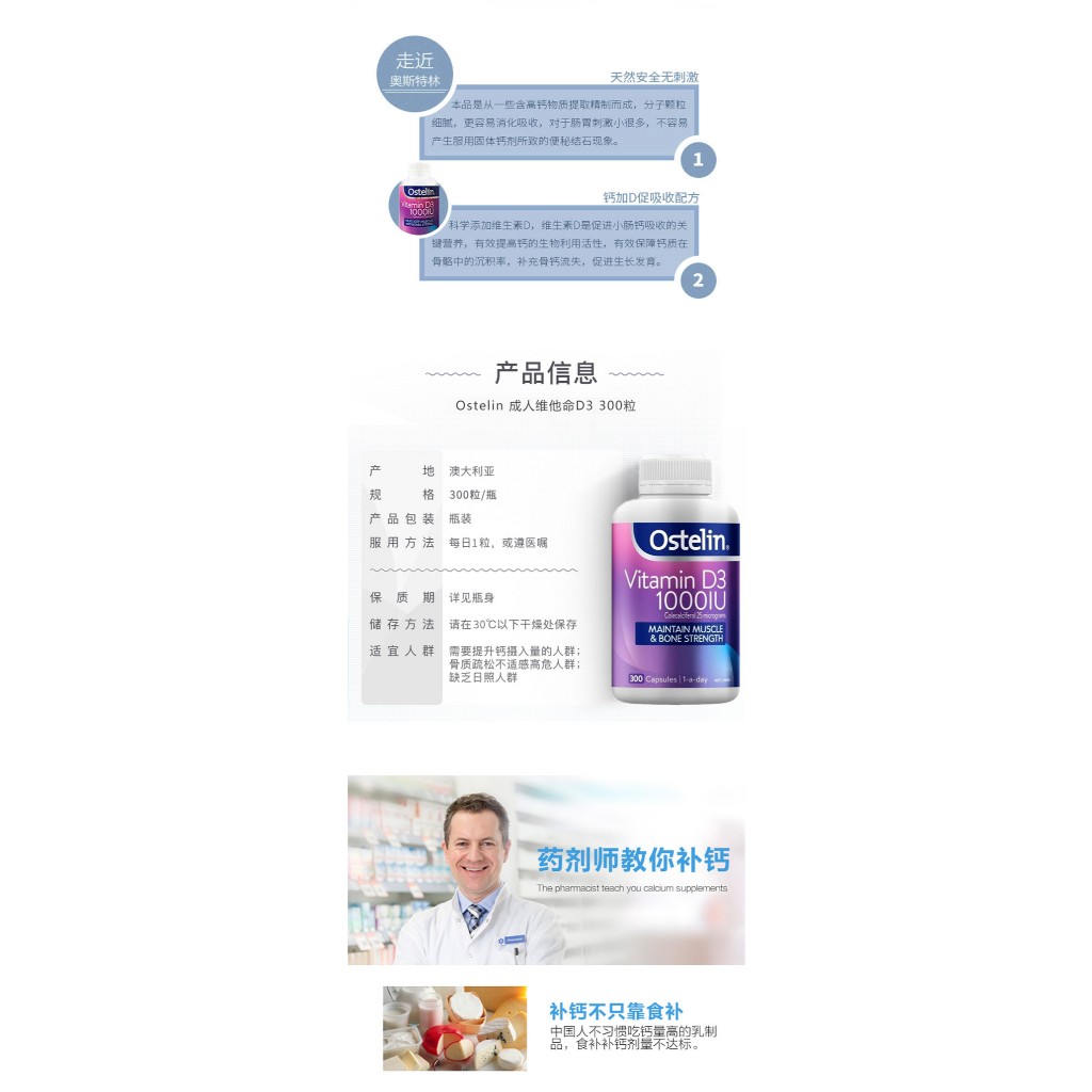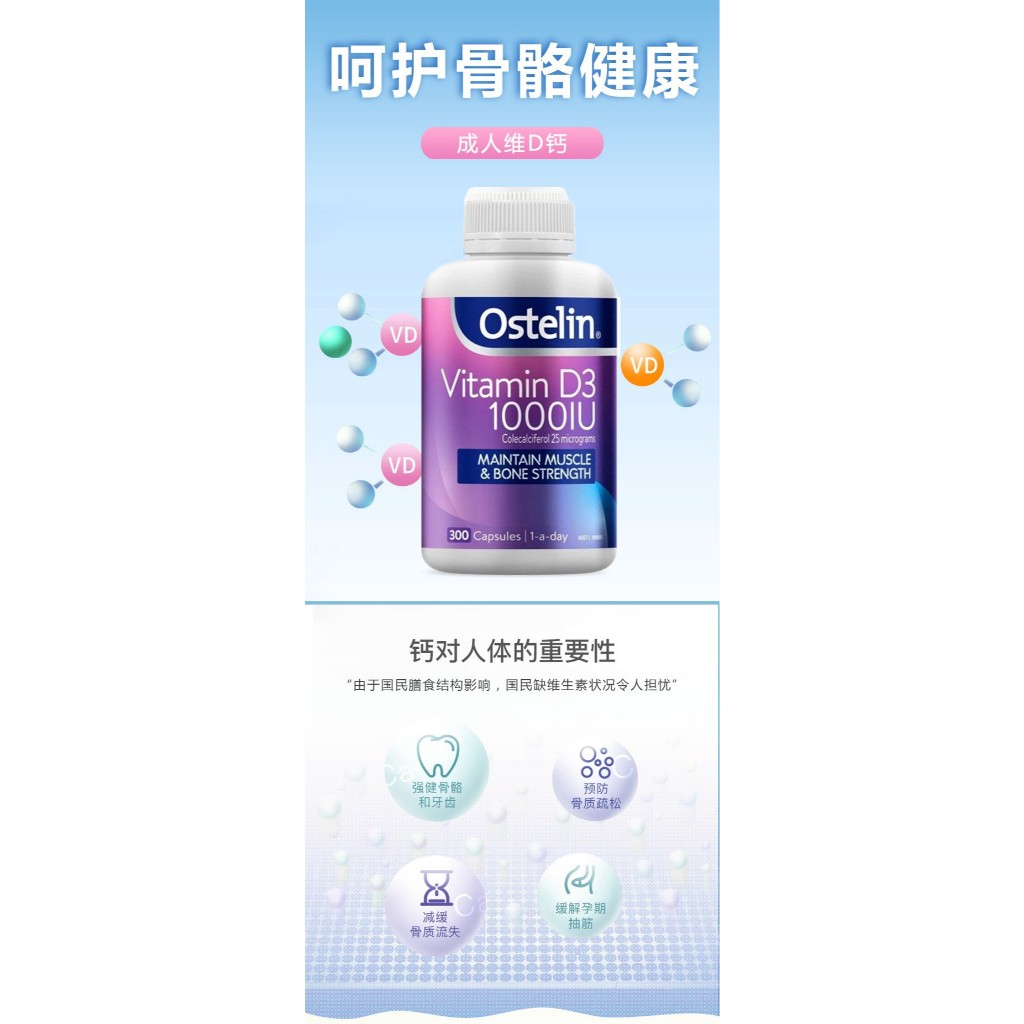[AUS Import EXP 07/2027] Ostelin Vitamin D3 Vitamin D 1000IU ( 300 Capsules ) ( Made in Australia )