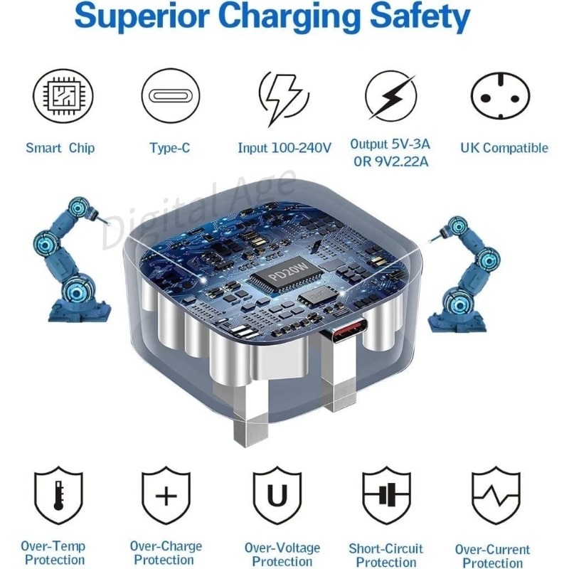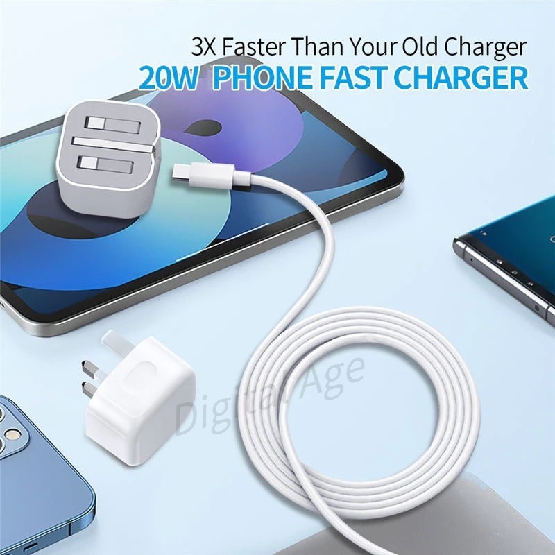 Authentic Apple Original 20W USB C Fast Charger Type-C Wall/PD fast charging cable for iPhone 17, 16, 15, 14,13and XR.UK