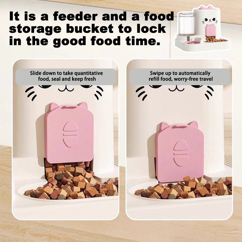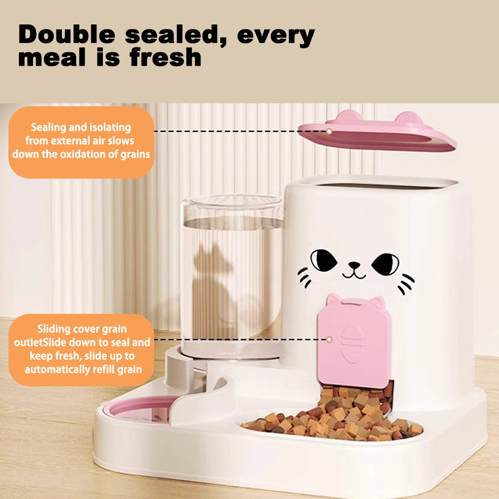 Automatic 2in1 Feeder Food Water Pet for Dog Cat Bowl Neck Protect