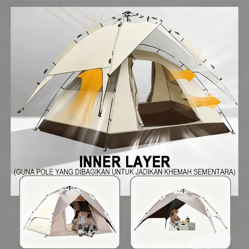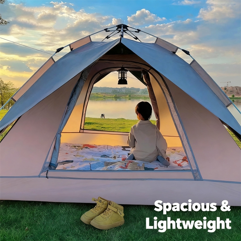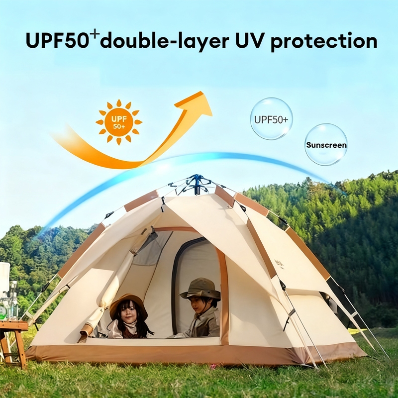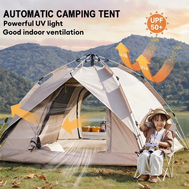 Automatic Pop-Up Camping Tent 2/4 Person Waterproof UV-Resistant Double Door Foldable Outdoor Tent