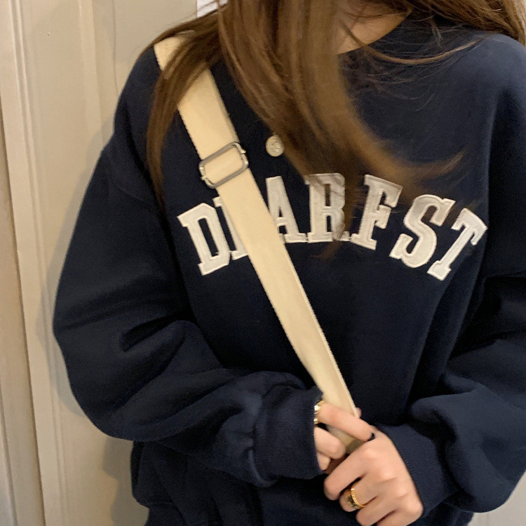 Autumn Embroidered Letter Thin Sweatshirt Women Loose Round Neck Fashion Student Long-Sleeved Top