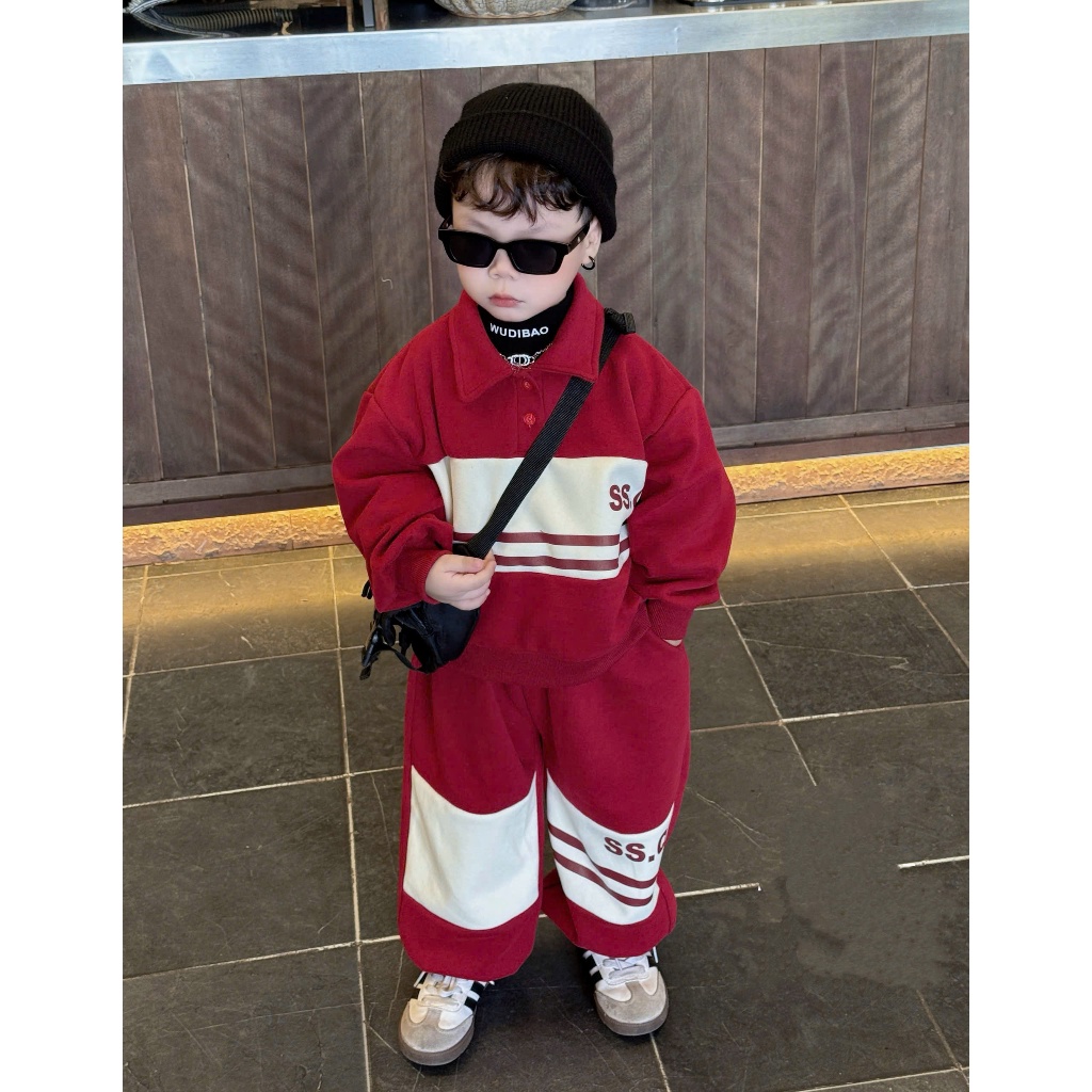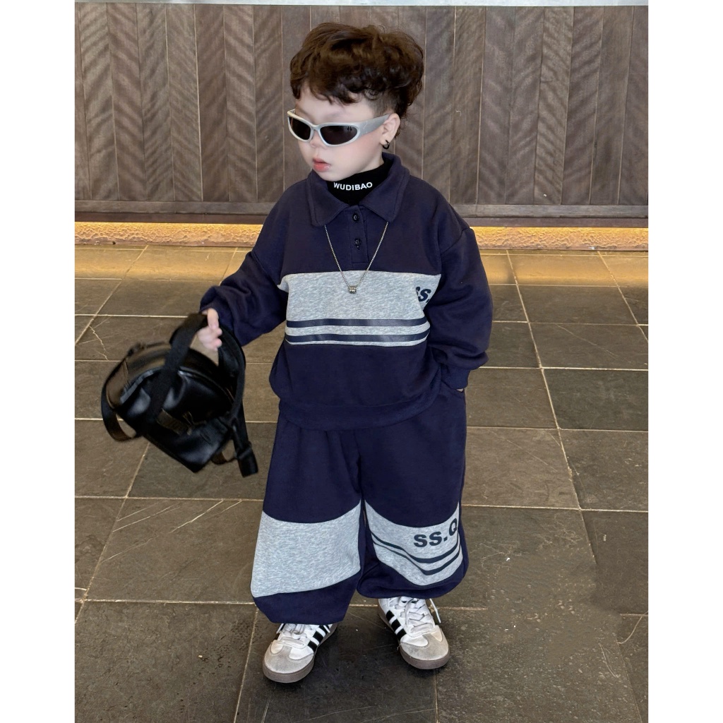 Autumn Winter Children's Clothes Set Polo Collar for Boys MS2 Soft Chinese Cotton Fleece 14-45KG