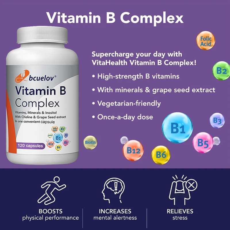 B Complex Vitamins B12 B1 B2 B3 B5 B6 Supports Better Mood Immune System, Nervous System Health and Energy Metabolism - 30/60/120capsules