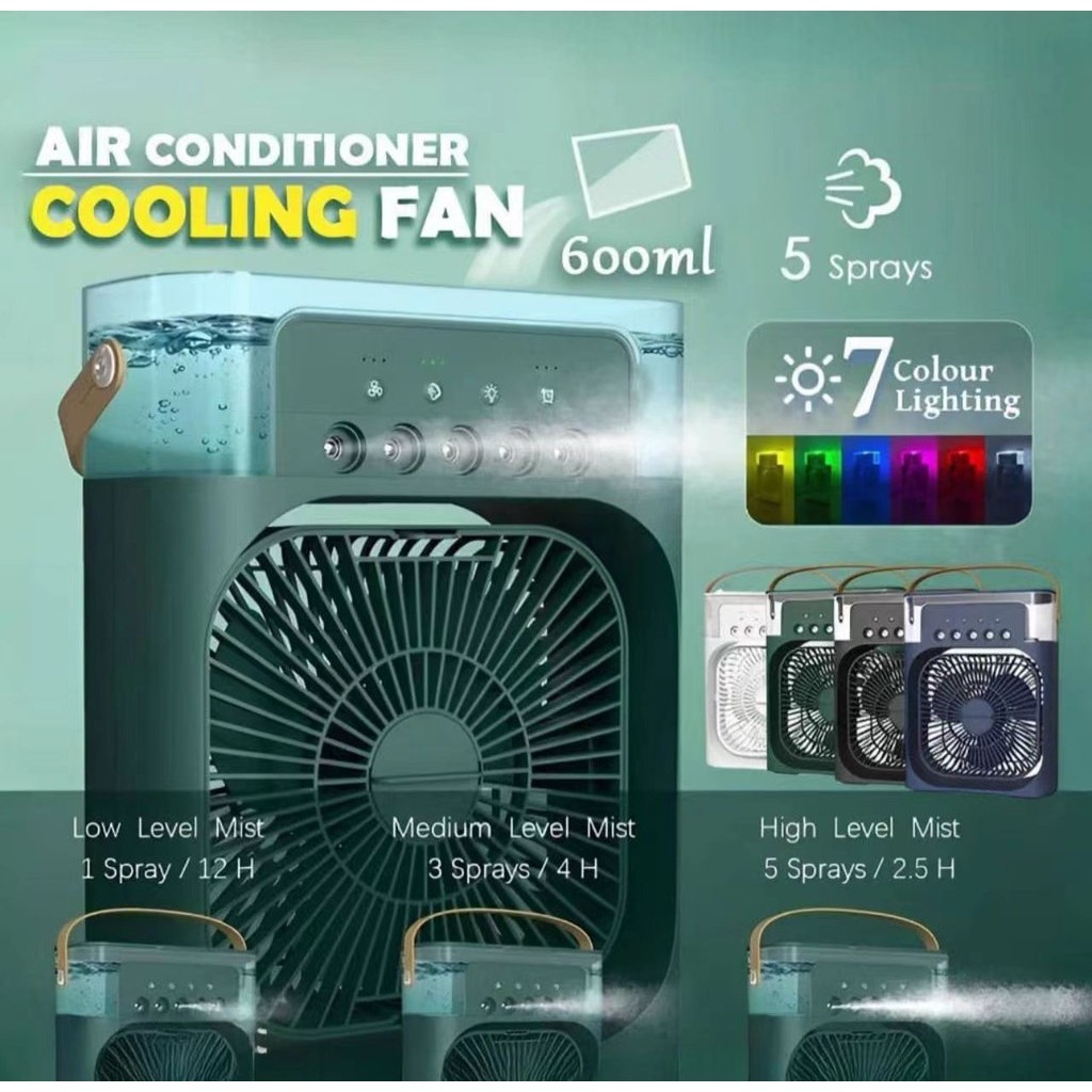 B.S.B Air Conditioner Cooling Fan With 5 Sprays 7 Color Light Portable Fan Air Cooler Kipas Mini Fan Air Humidifier